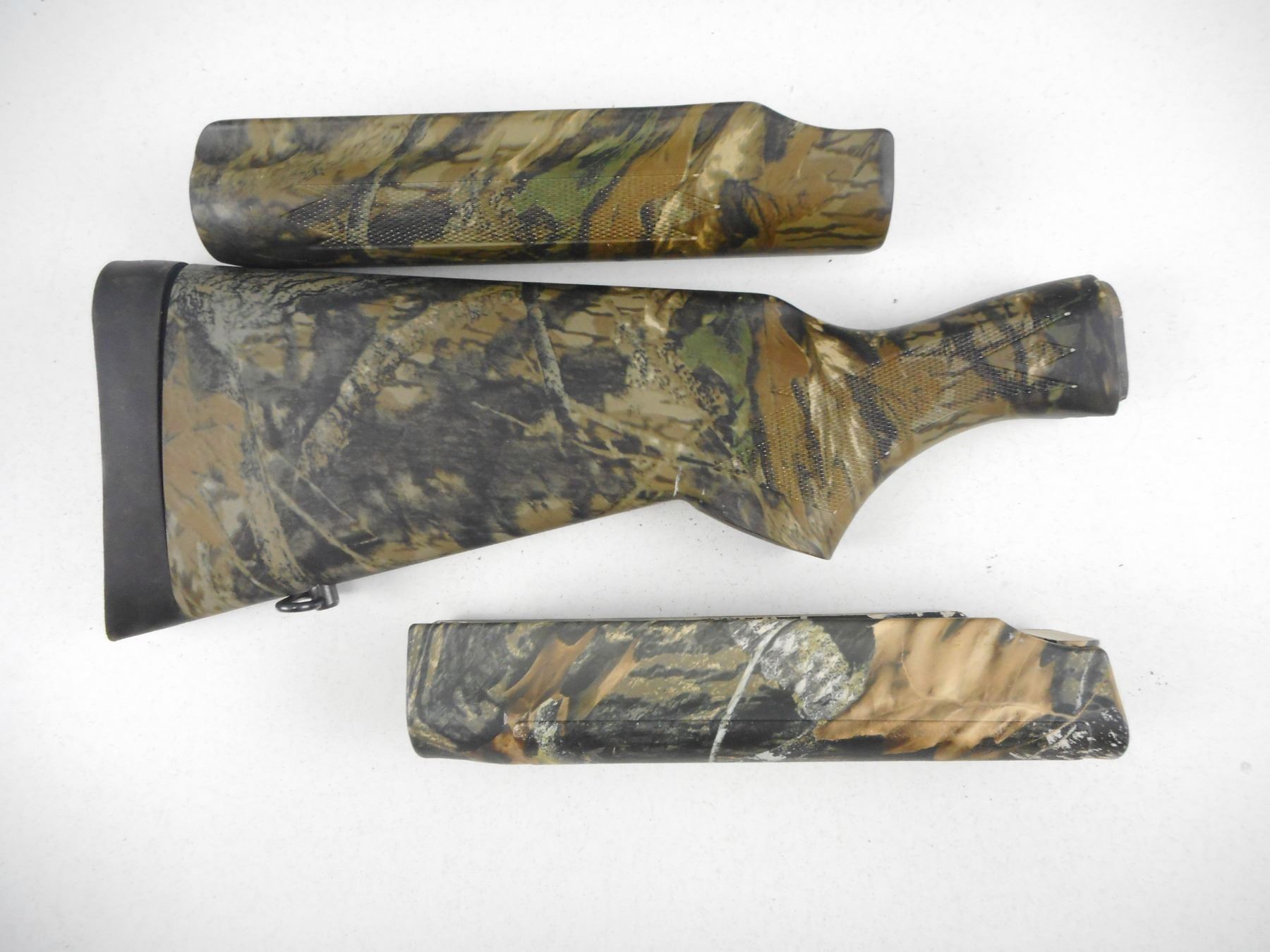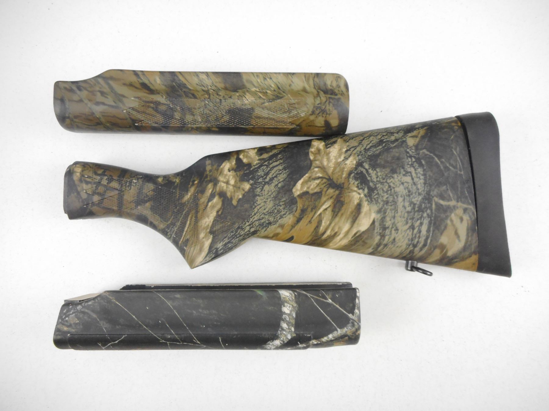 REMINGTON 870 STOCK SET , ALL SYNTHETIC CAMO (1) BUTT STOCK WITH RUBBER BUTT PLATE & SLING RING (2) FORE STOCKS, LOT OF 3