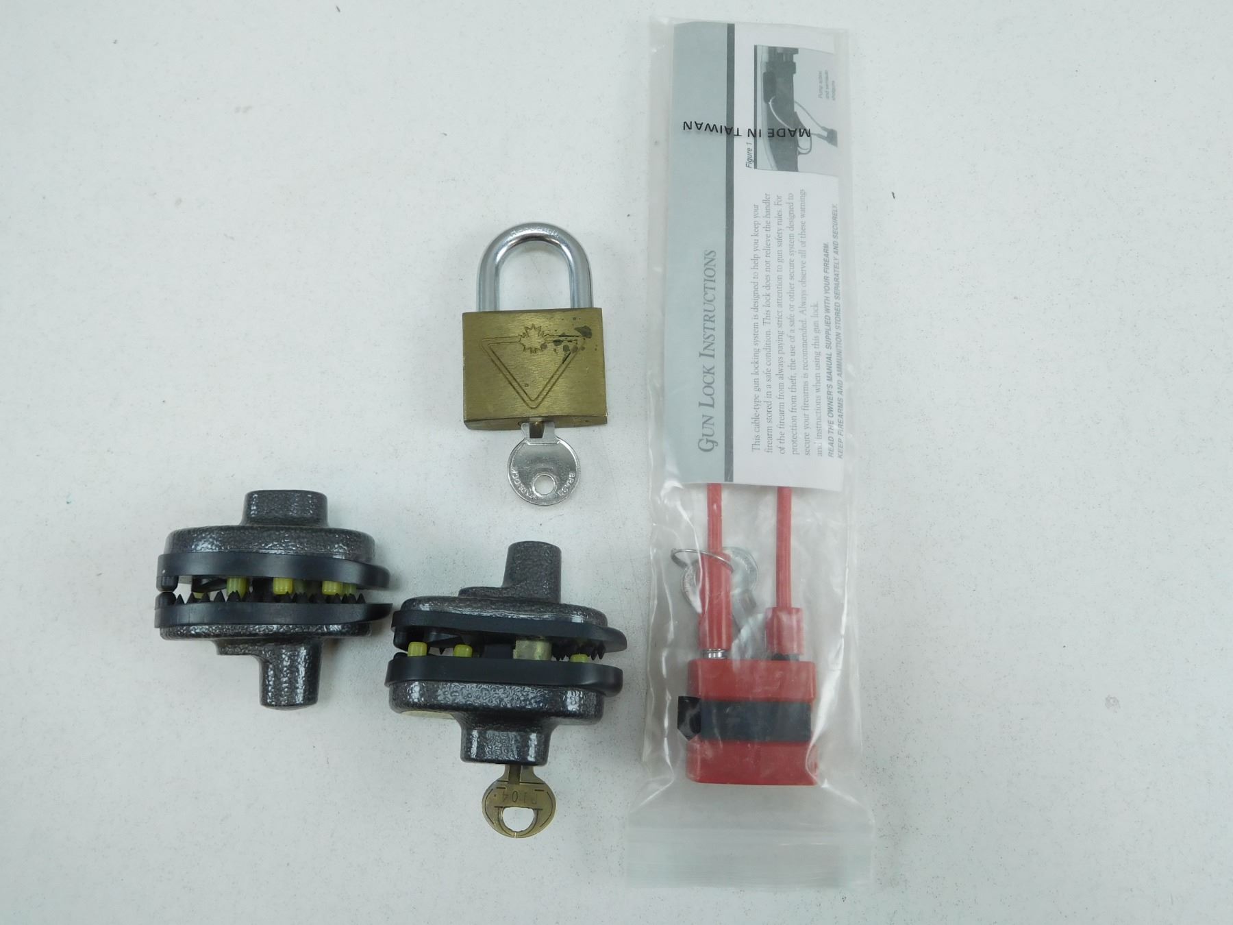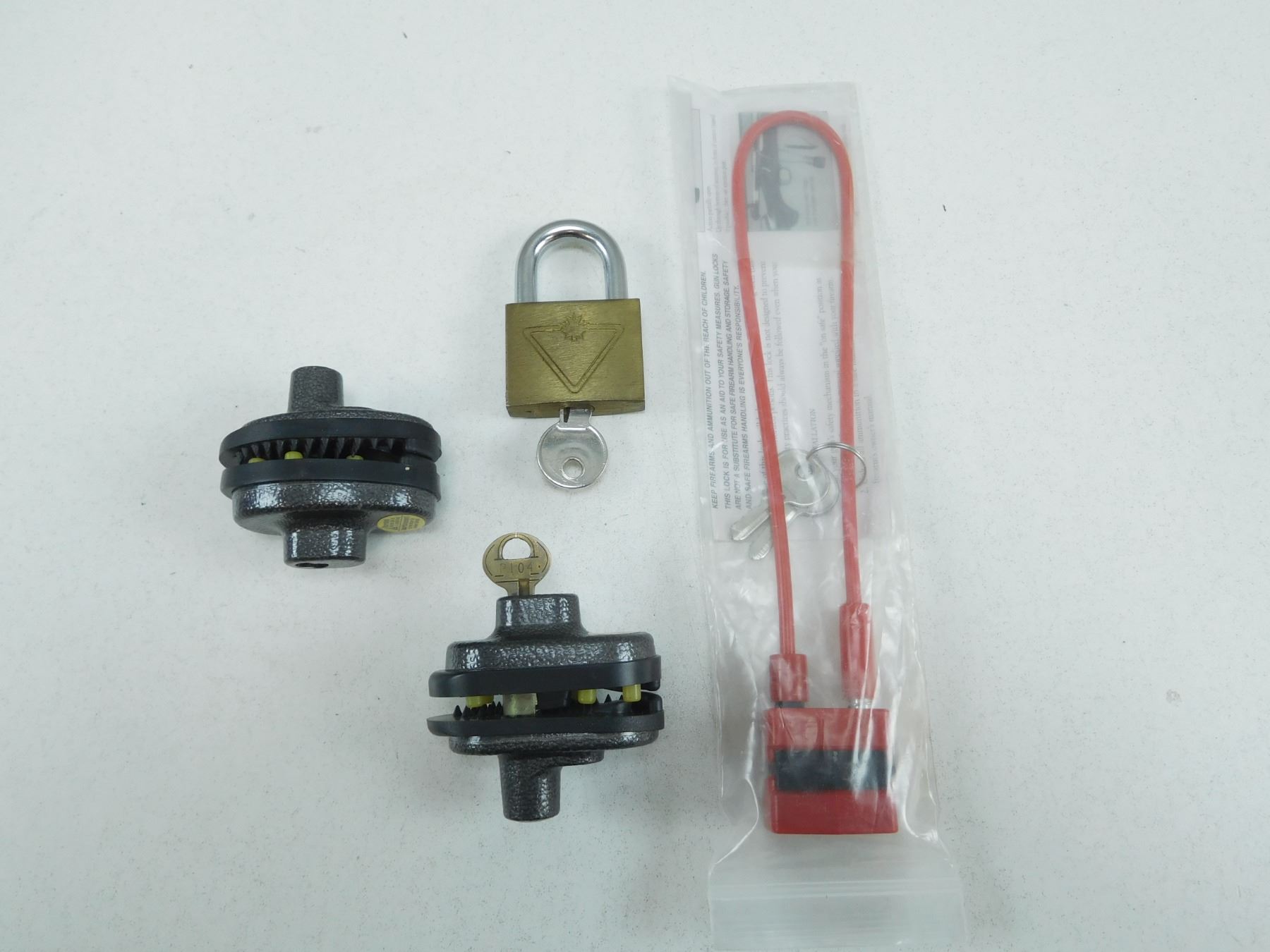 ASSORTED LOCKS , INCLUDES TRIGGER LOCKS, CABLE LOCKS, ALL WITH KEYS