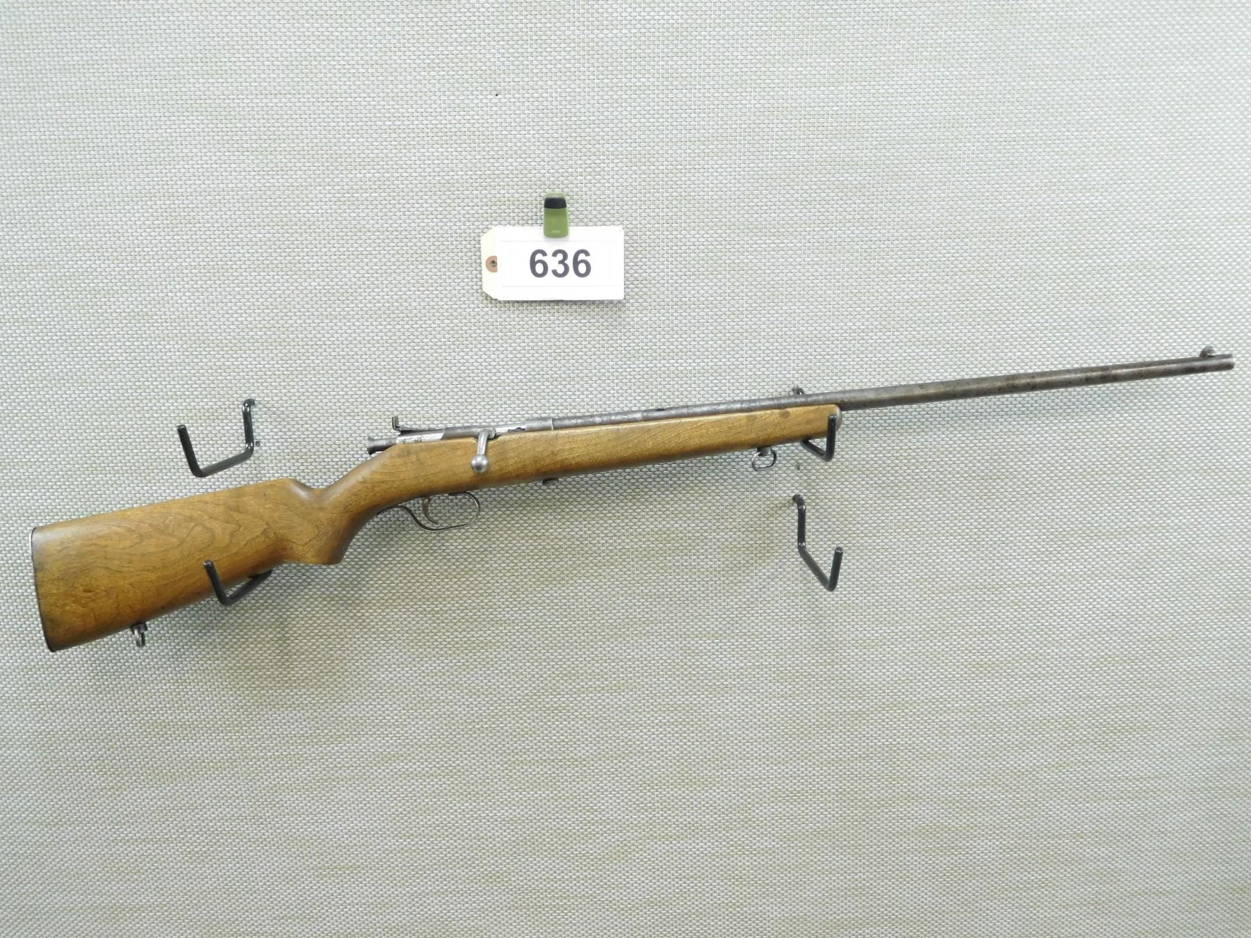 MARLIN , MODEL: TOM MICKS SPECIAL 100 S , CALIBER: 22 LR , DOVETAIL FRONT AND REAR PEEP SIGHT, SHOWS EXTENSIVE HANDLING MARKS WITH MOTTLED FINISH, SLING SWIVEL STUDS, STEEL BUTT PLATE, BORE IS GOOD , BARREL LENGTH: 24" , SERIAL # N/A , STOCK # 8005 , CONDITION: 3/10 , CLASS: CANADIAN NON RESTRICTED CLASS