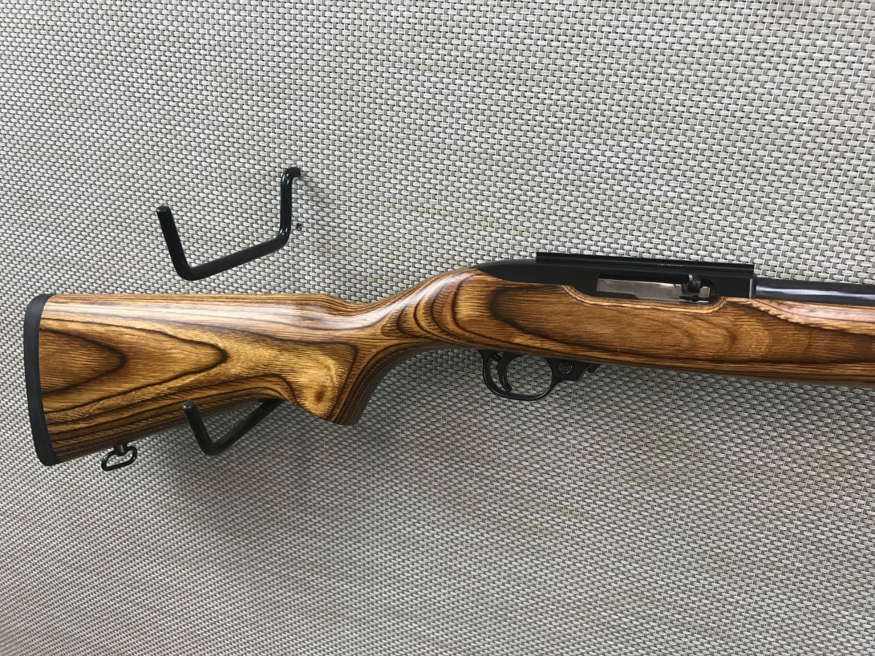 RUGER , MODEL: 10/22 CARBINE , CALIBER: 22 LR , COMES WITH MAGAZINE, BULL BARREL, DRILLED AND TAPPED FOR SCOPE MOUNTS, BORE IS EXCELLENT, SLING SWIVEL LOOPS, LAMINATED STOCK, ATTACHED SCOPE RAIL, RUBBER RECOIL PAD, SHOWS SOME HANDLING MARKS , BARREL LENGTH: 20" , SERIAL # 24652876 , STOCK # 8086 , CONDITION: 8/10 , CLASS: CANADIAN NON RESTRICTED CLASS