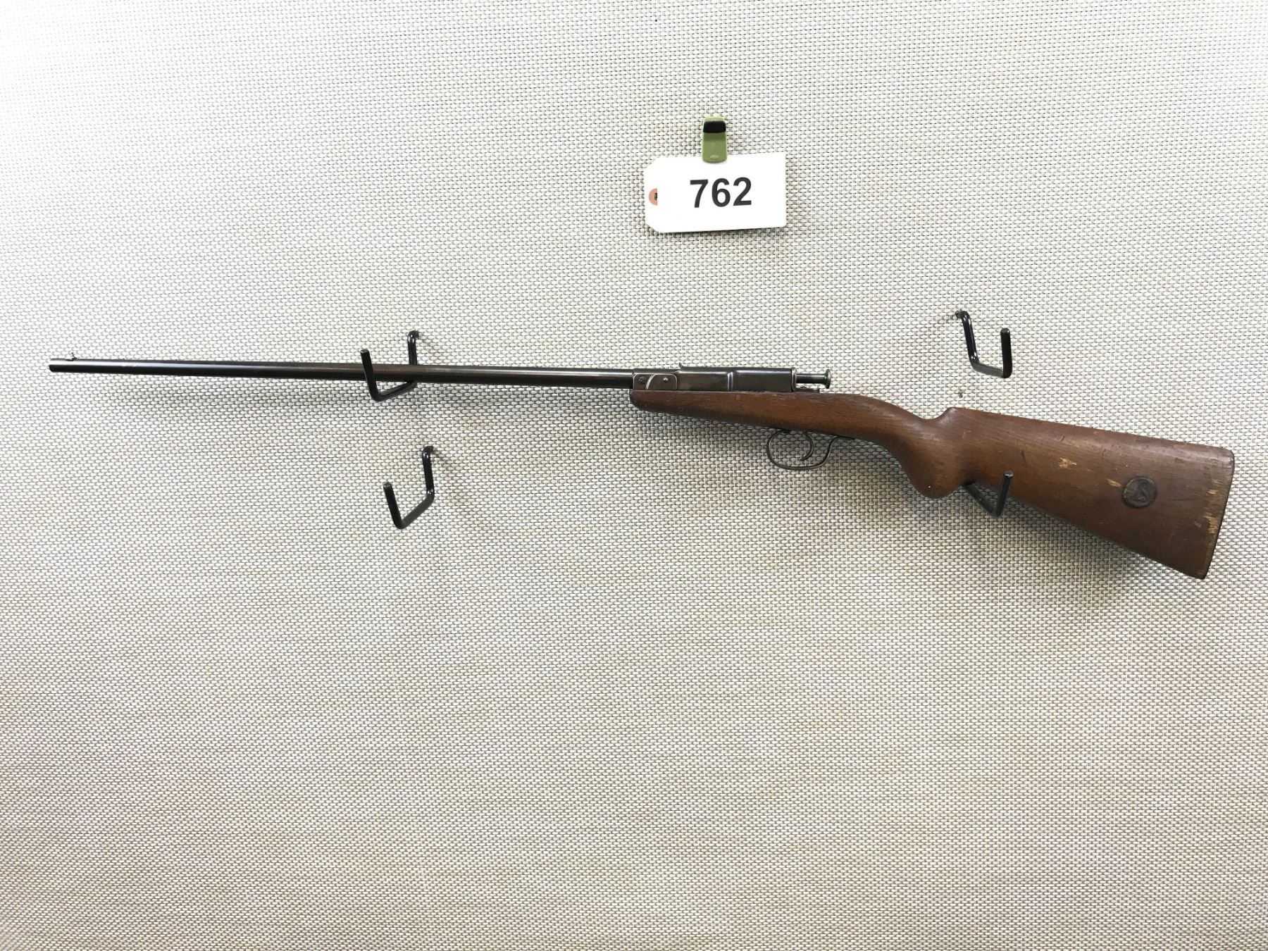 DEUTCHE WERKE , MODEL: 1 , CALIBER: 22 LR , BORE IS GOOD, SHOWS SOME HANDLING MARKS, DOVETAIL FRONT AND V NOTCH REAR SIGHT, STEEL BUTT PLATE , BARREL LENGTH: 22 3/4" , SERIAL # N/A , STOCK # 8131 , CONDITION: 4/10 , CLASS: CANADIAN NON RESTRICTED CLASS