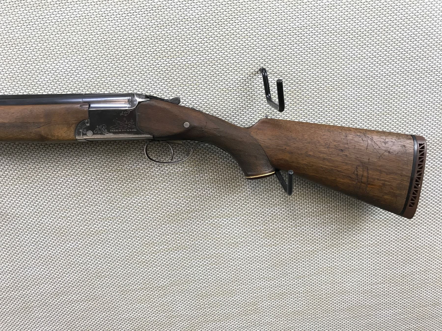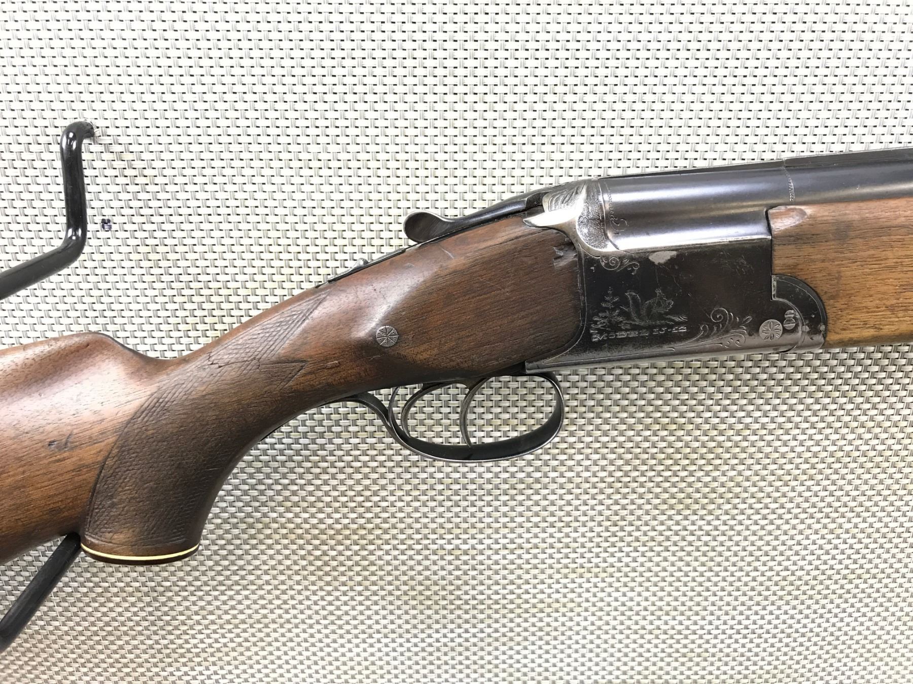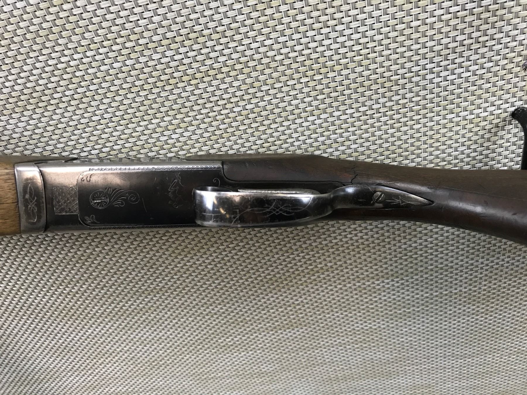BAIKAL , MODEL: IJ-12 , CALIBER: 12GA X 2 3/4" , VERY GOOD BORES, FIXED FULL MODIFIED CHOKES, THERE IS A CRACK AT THE WRIST OF THE BUTT STOCK, MISSING THE REAR SLING SWIVEL, SHOWS EXTENSIVE HANDLING MARKS, BEAD FRONT, VENTED RUBBER RECOIL PAD, CHECKERED FOREND WITH CAPPED PISTOL GRIP STOCK , BARREL LENGTH: 28 3/4" , SERIAL # P18392 , STOCK # 8165 , CONDITION: 5/10 , CLASS: CANADIAN NON RESTRICTED CLASS