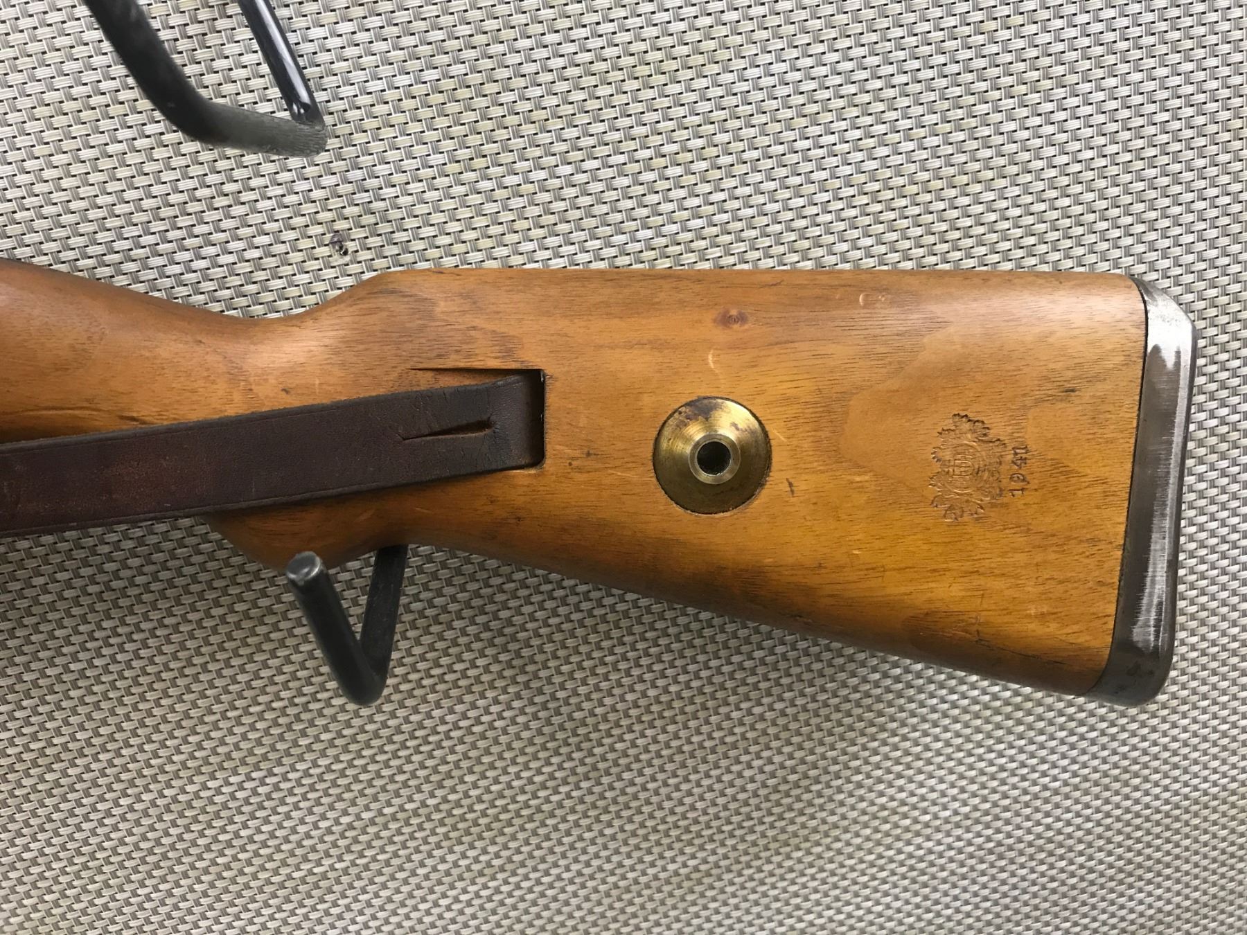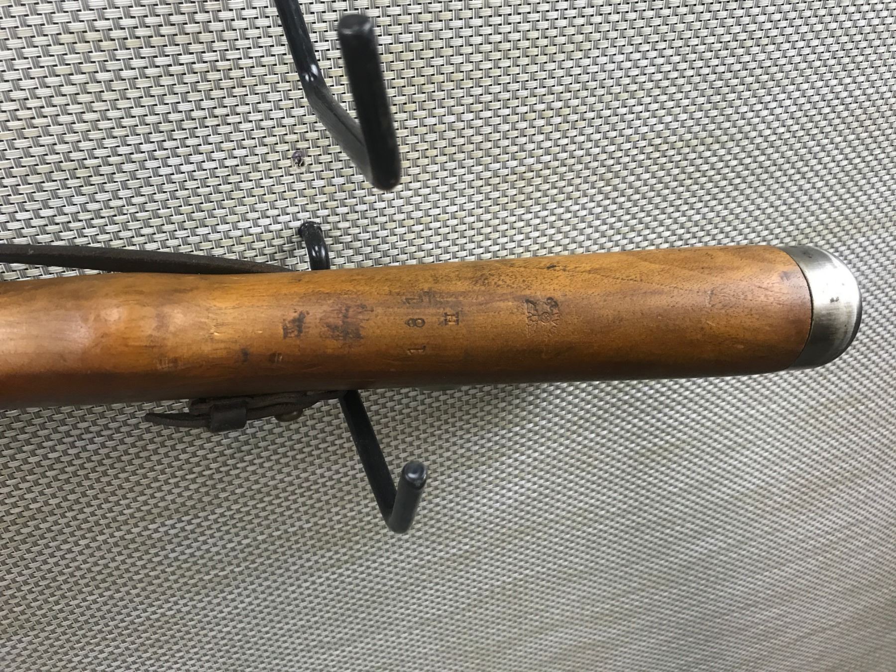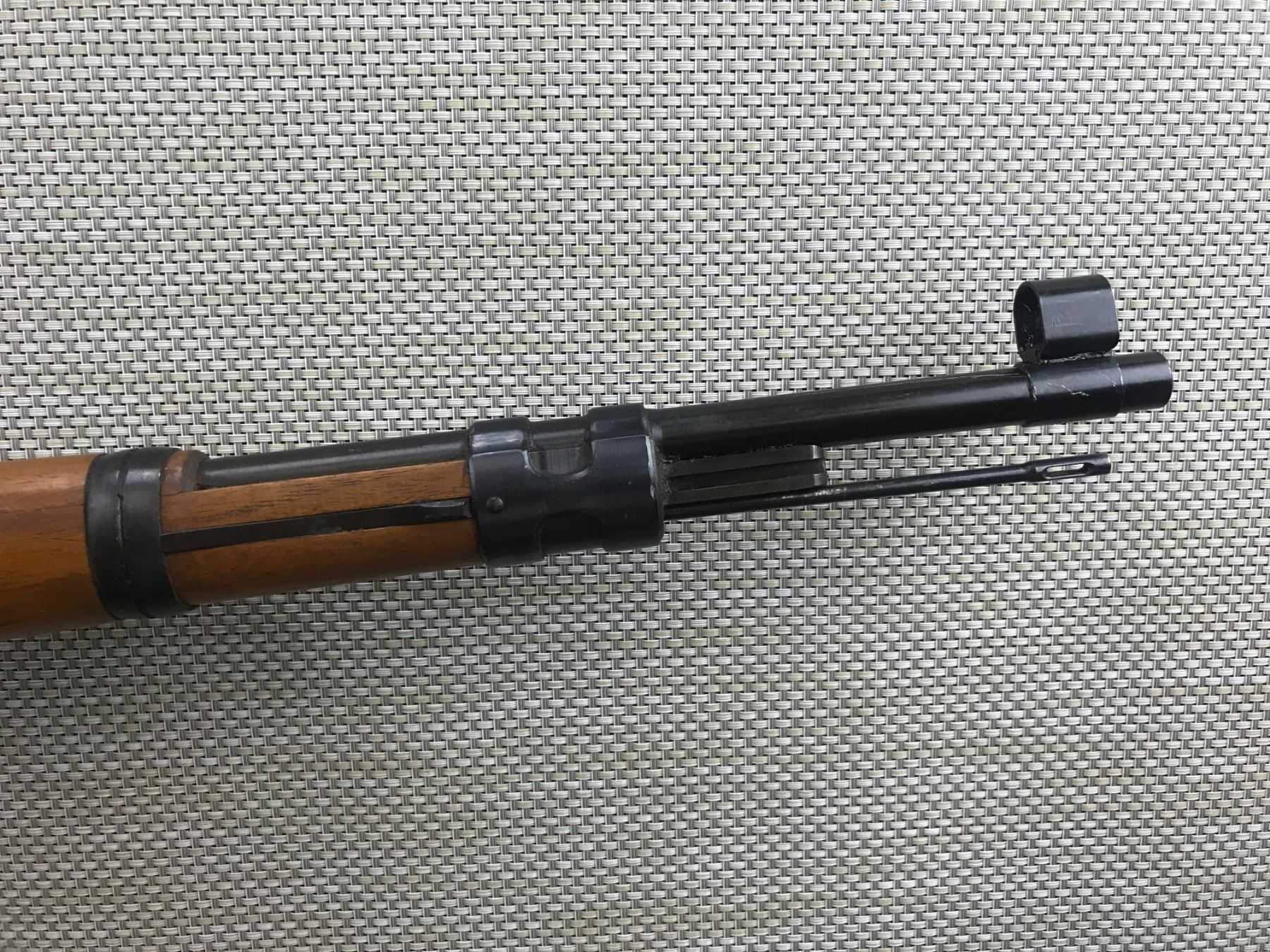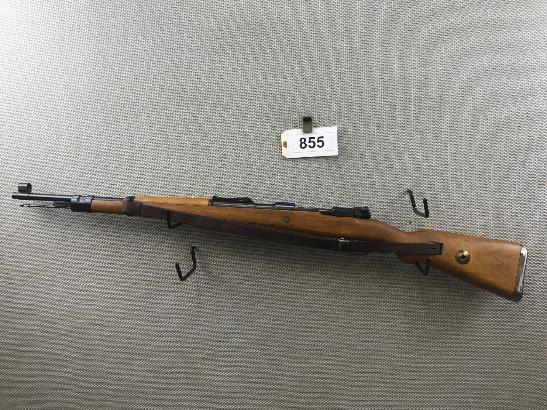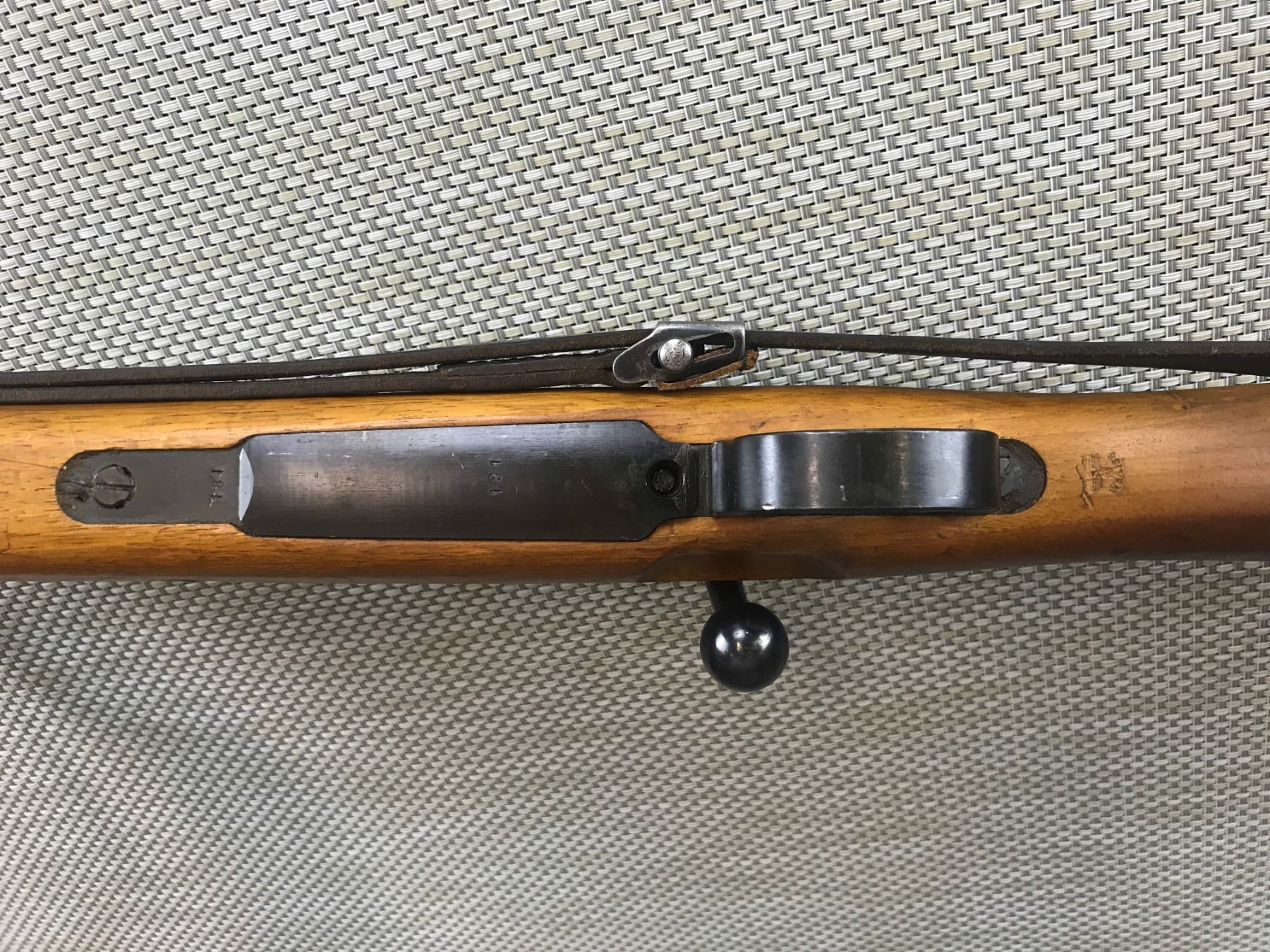 RARE WWII ERA UNFIRED PORTUGESE MAUSER , MODEL: 1941 PORTUGESE SHORT RIFLE , CALIBER: 8MM MAUSER , COMES WITH MATCHING BAYONET, BOLT AND RECEIVER ALSO MATCH BY SERIAL #, DATED 1941, EXCELLENT BORE, HOODED FRONT SIGHT AND ADJUSTABLE REAR SIGHT, ORGINIAL LEATHER SLING, RETAINS FULL MILITARY CONFIGURATION, HAS A PORTUGESE CREST AND GERMAN WAFFEN MARKS , BARREL LENGTH: 24" , SERIAL # H181 , STOCK # 8224 , CONDITION: AS NEW , CLASS: CANADIAN NON RESTRICTED CLASS