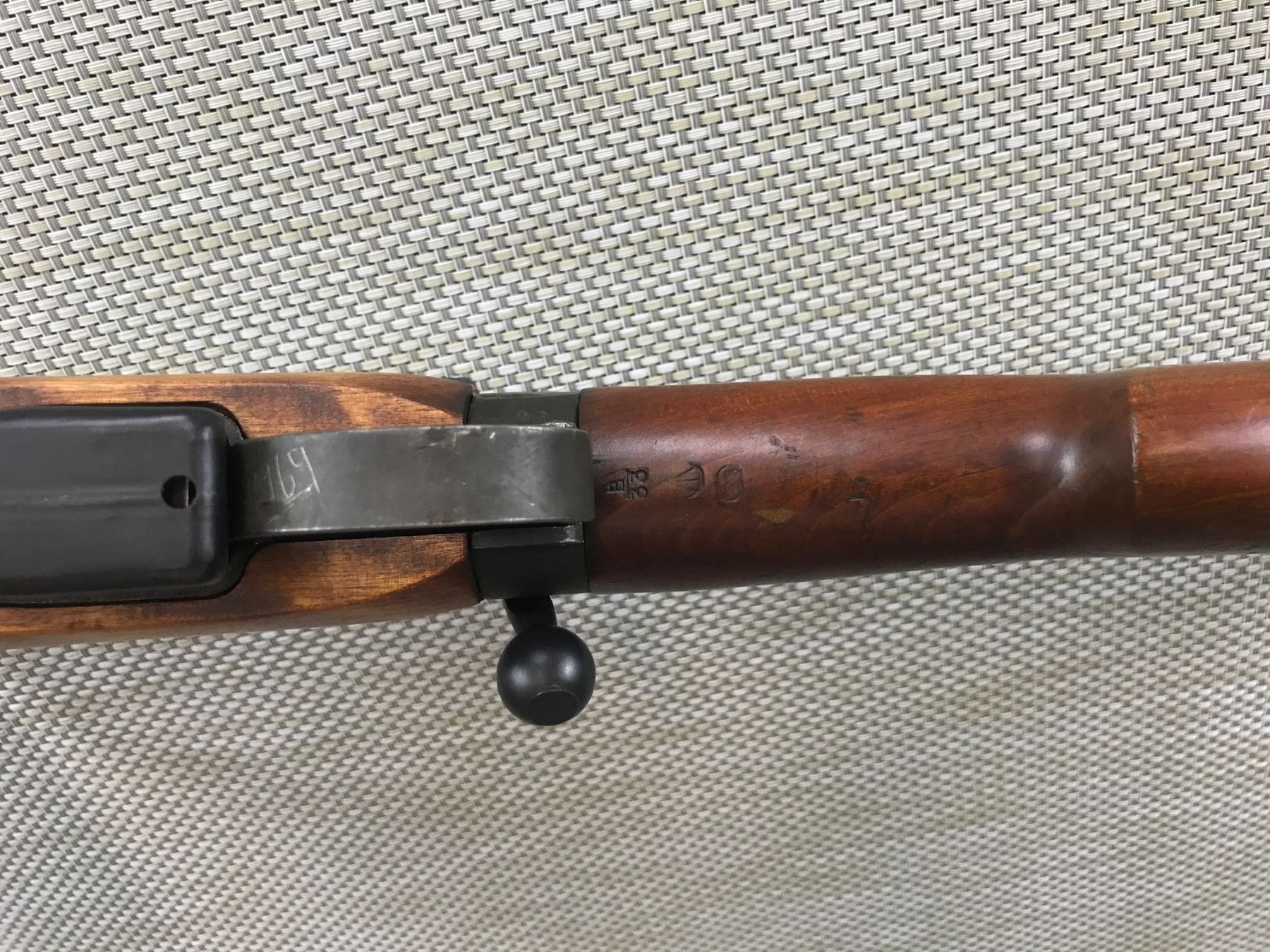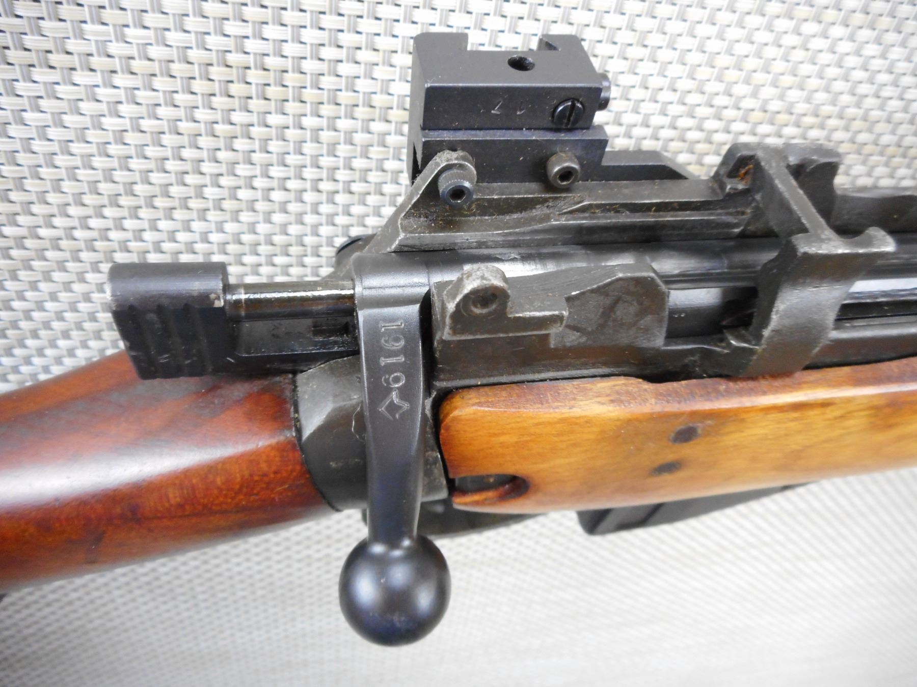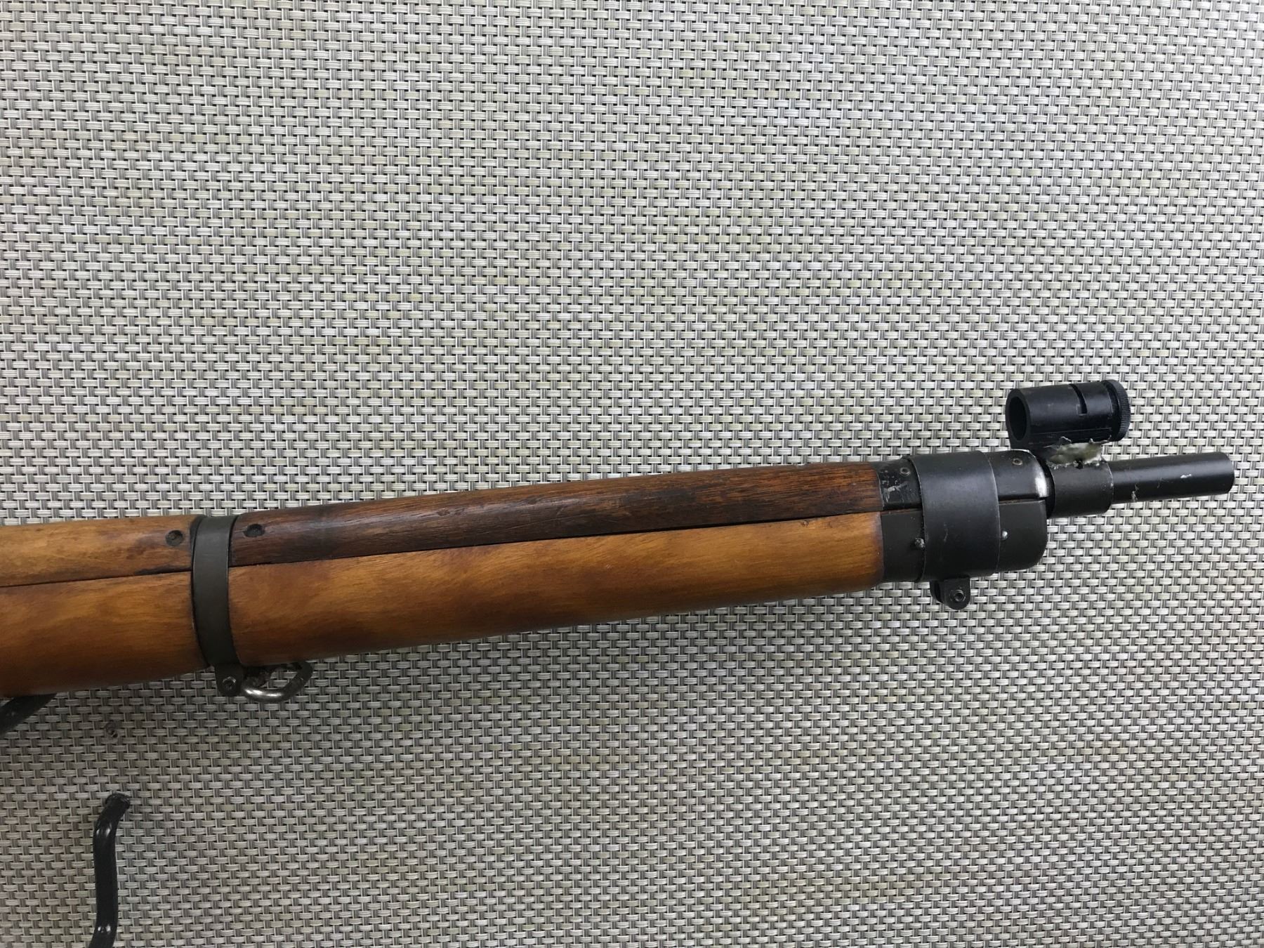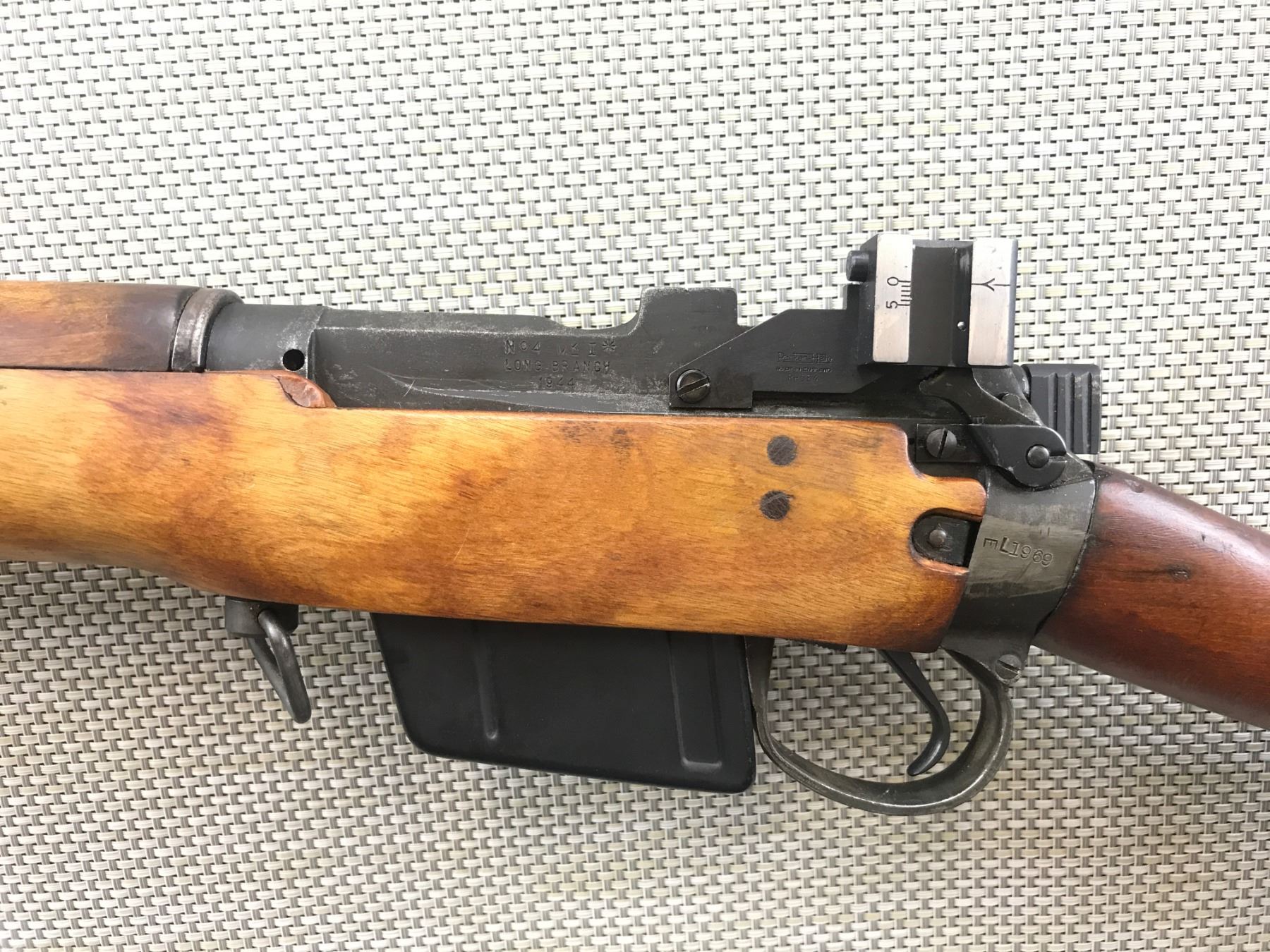 WWII ERA, LEE ENFIELD DCRA TARGET RIFLE , MODEL: NO 4 MKI* , CALIBER: 7.62 X 51 NATO , COMES WITH COMES WITH A CANADIAN WOOD CHEST C NO. 7 -- WOOD IS AS ASSEMBLED AND ISSUED BY ARMOURER AT CANADIAN ARSENALS-- HAS THE TWO WOODEN PEGS INSERTED INTO STOCK AT REAR OF RECEIVER AS PER CANADIAN ACCURIZING PROCEDURE -- SLING LOOP IN FRONT OF MAGAZINE IS FOR TARGET SHOOTING -- HAS STERLING 7.62 X 51 NATO MAGAZINE, FIREARM IS DATED 1944, BOLT AND RECEIVER MATCH BY SERIAL #, LONGBRANCH DCRA TARGET RIFLE, HAS A PARKER HALE PH 5 E4 BACK SIGHT AND A WALTHER MARK I FRONT SIGHT, RETAINS FULL MILITARY CONFIGURATION, SHOWS SOME HANDLING MARKS, WOOD IS DIFFERENT COLOURS BUT THIS IS THE ORIGINAL WAY THE ARSENAL PUT IT TOGETHER, SLING LOOPS , BARREL LENGTH: 25" , SERIAL # 1919 , STOCK # 8241 , CONDITION: 8/10 , CLASS: CANADIAN NON RESTRICTED CLASS