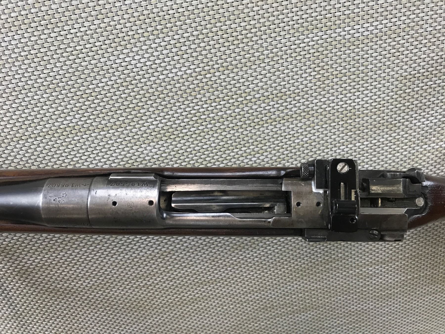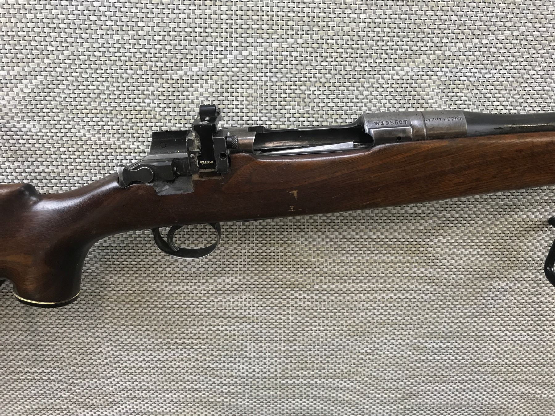 WWI ERA, ENFIELD , MODEL: P14 SPORTERIZED , CALIBER: 303 BR , MISSING BOLT, DATED 1917, BRD ARROW MARKED, BLADE FRONT AND PEEP APERTURE REAR SIGHT, CAPPED STOCK, MISSING THE BUTT PLATE, SHOWS SOME HANDLING MARKS, FLOOR PLATE HAS BEEN BRAISED, DRILLED AND TAPPED FOR SCOPE MOUNTS , BARREL LENGTH: 21" , SERIAL # W195507 , STOCK # 8261 , CONDITION: 3/10 , CLASS: CANADIAN NON RESTRICTED CLASS