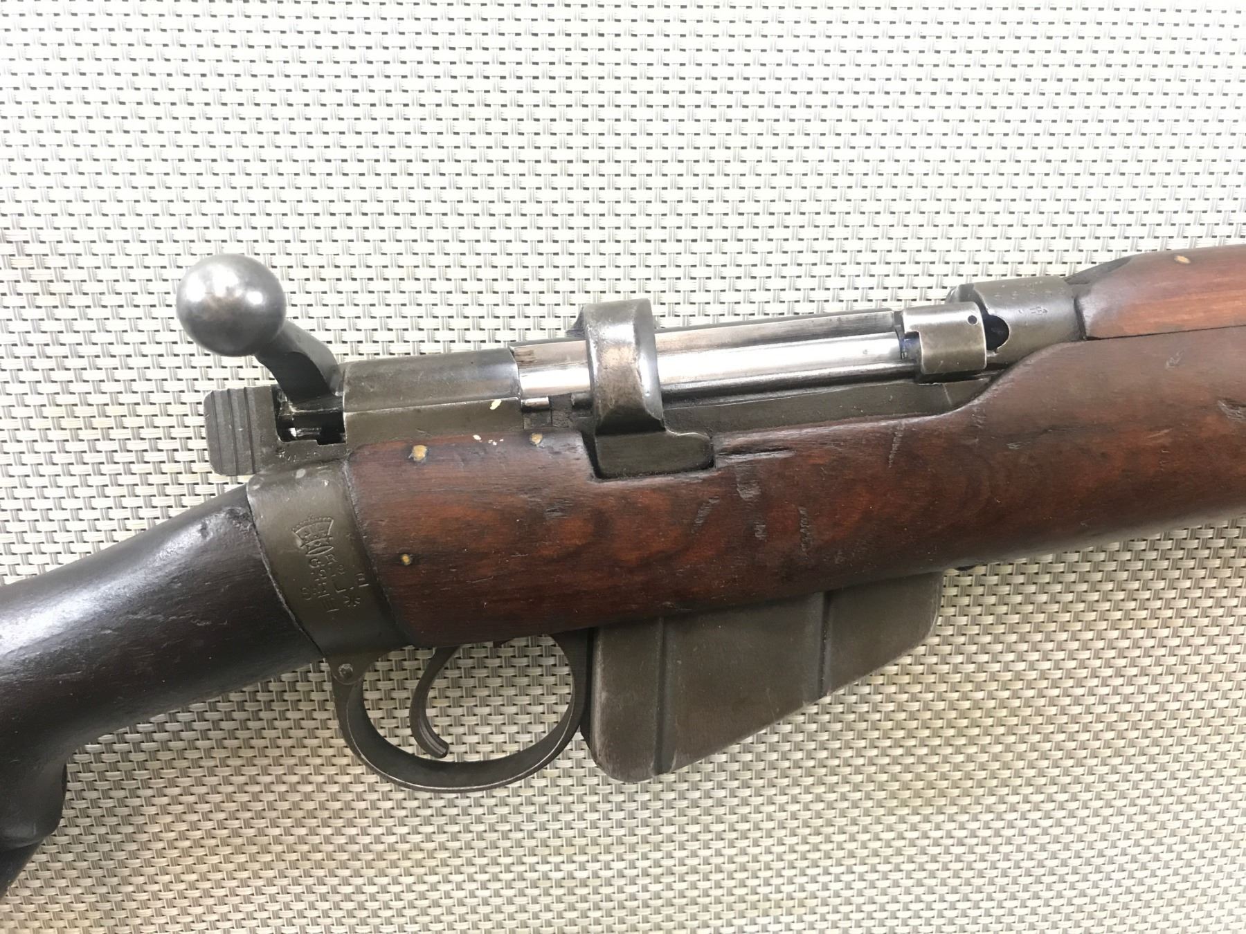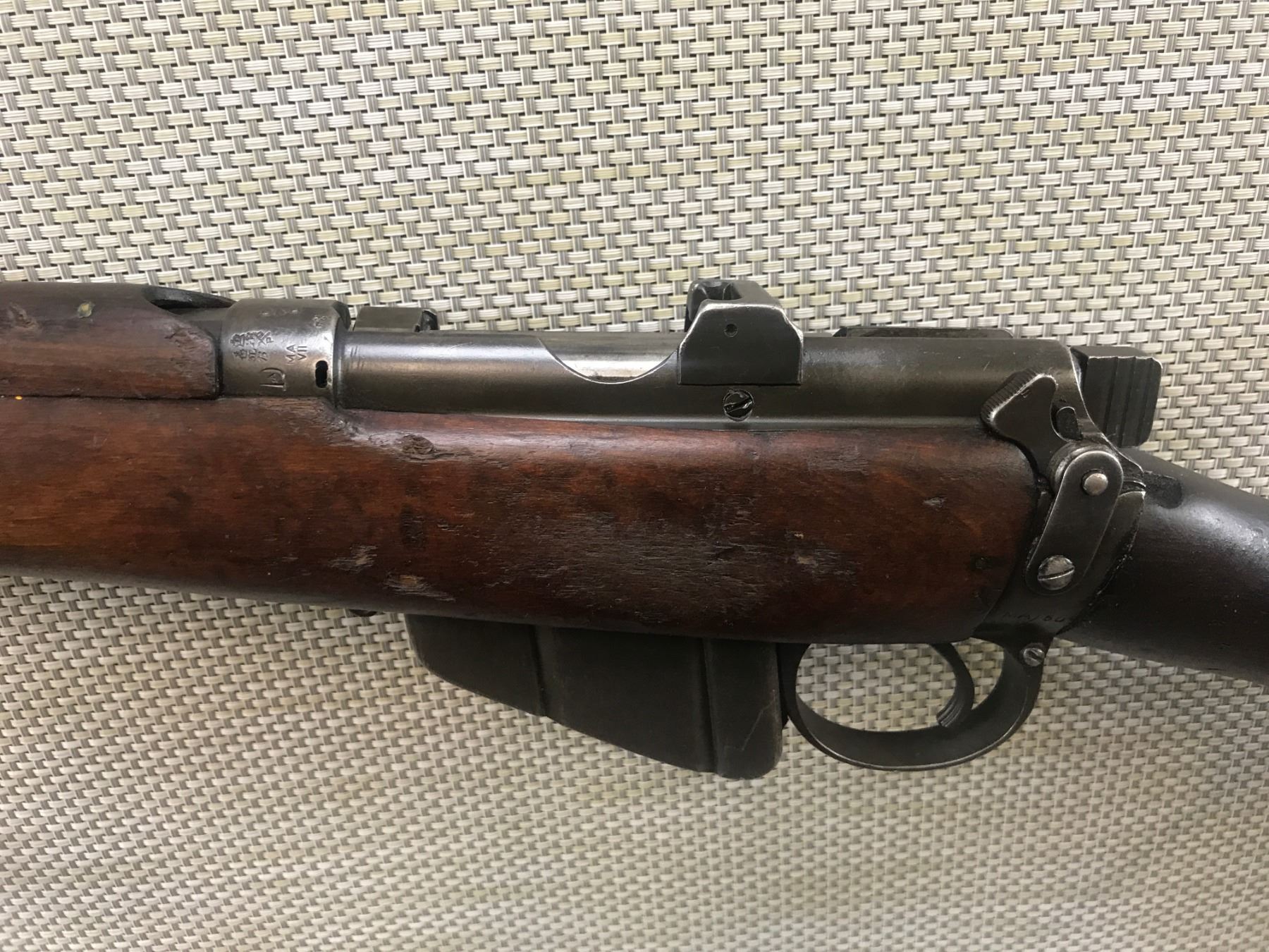 LEE ENFIELD , MODEL: NO 1 MKIII* , CALIBER: 303 BR , COMES WITH MAGAZINE, HAS MATCHING #'S, VERY GOOD BORE, STRONG RIFLING, RETAINS FULL MILTARY CONFIGURATION, BARLEY CORN FRONT AND FULLY ADJUSTABLE REAR SIGHTS, SHOWS EXTENSIVE HANDLING MARKS, SLING SWIVEL LOOPS , BARREL LENGTH: 25 1/2" , SERIAL # W55356 , STOCK # 8302 , CONDITION: 6/10 , CLASS: CANADIAN NON RESTRICTED CLASS