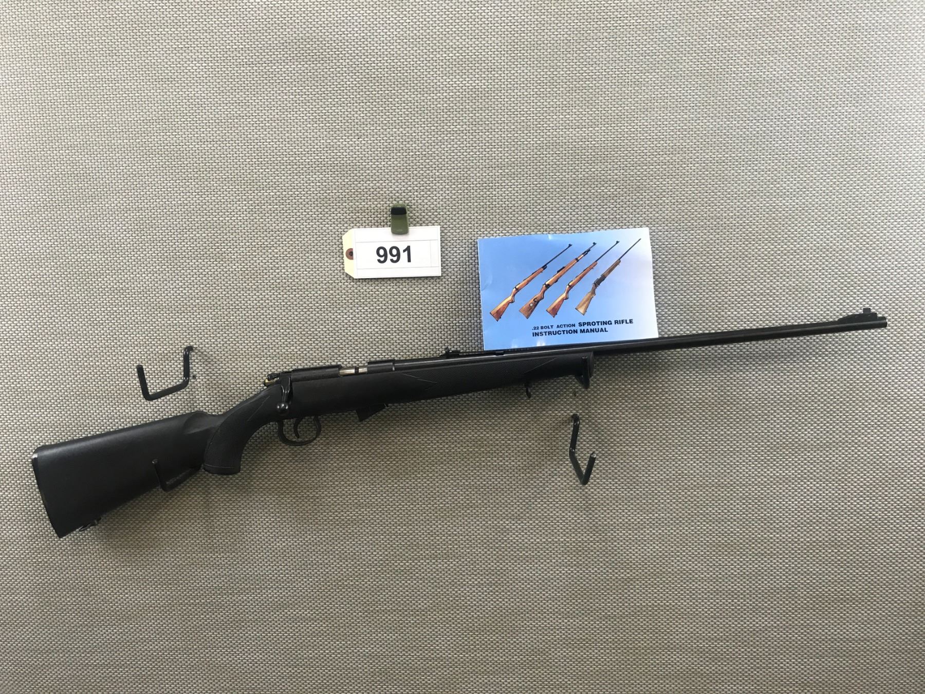 NORINCO , MODEL: JW15A , CALIBER: 22 LR , COMES WITH MAGAZINE & MANUAL, VERY GOOD BORE, BLACK SYNTHETIC STOCK, SLING SWIVEL LOOPS, RAISED FRONT AND ADJUSTBLE REAR SIGHTS, PLASTIC BUTT PLATE , BARREL LENGTH: 24" , SERIAL # 1421068 , STOCK # 8360 , CONDITION: 7/10 , CLASS: CANADIAN NON RESTRICTED CLASS