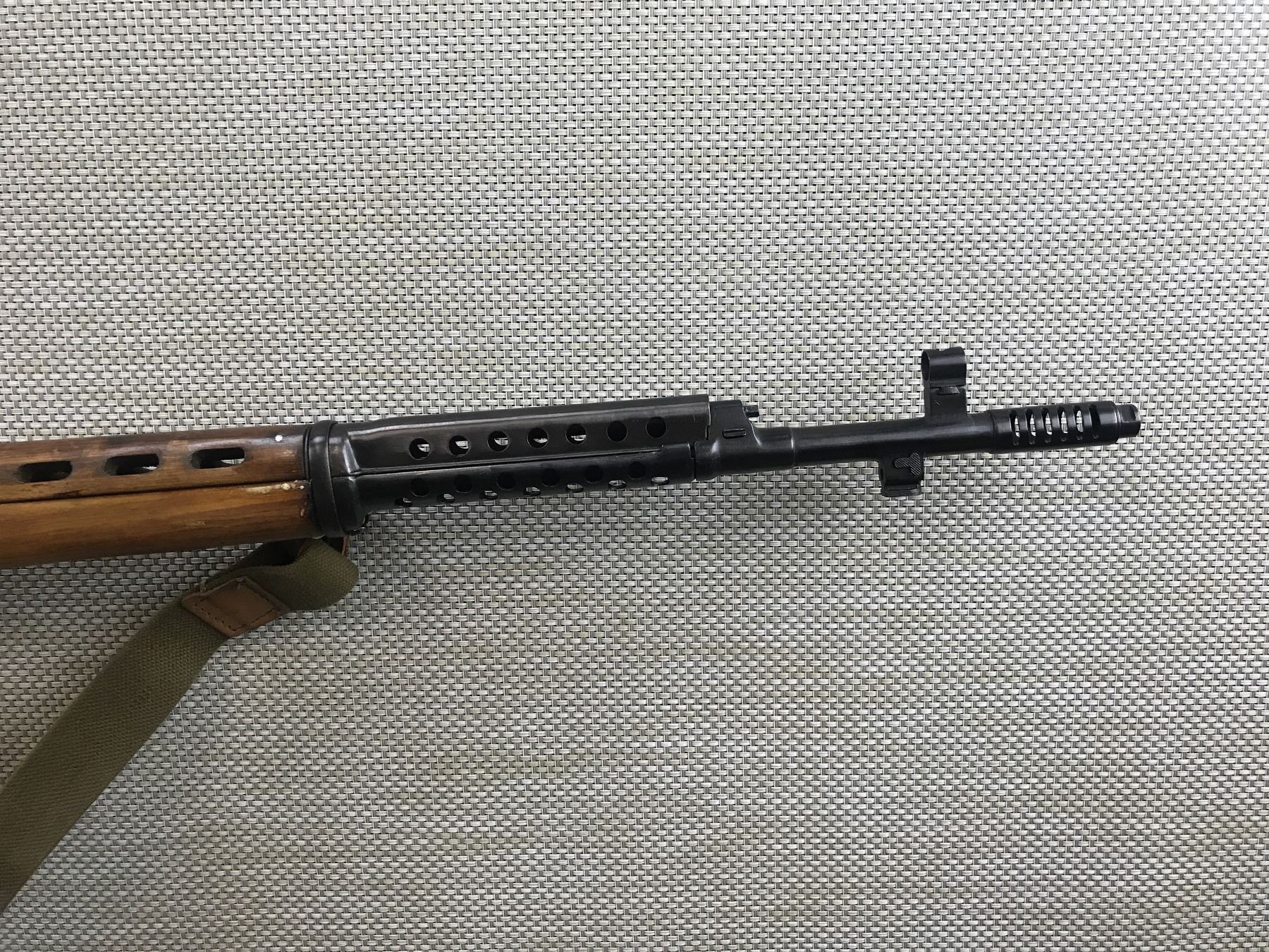 TOKAREV , MODEL: SVT 1940 , CALIBER: 7.62 X 54R , COMES WITH PINNED MAGAZINE, GOOD BORE, HOODED FRONT AND ADJUSTABLE REAR SIGHT, MUZZLE BREAK AND BAYONET LUG IS INTACT, RETAINS FULL MILITARY CONFIGURATION, BOLT IS MARKED TO MATCH THE RECEIVER, SCOPE RAIL HAS BEEN ADDED, THERE IS HOCKEY TAPE ADDED TO THE BUTT STOCK, ORIGINAL CANVAS AND LEATHER SLING , BARREL LENGTH: 24" , SERIAL # C32914 , STOCK # 8400 , CONDITION: 7/10 , CLASS: CANADIAN NON RESTRICTED CLASS