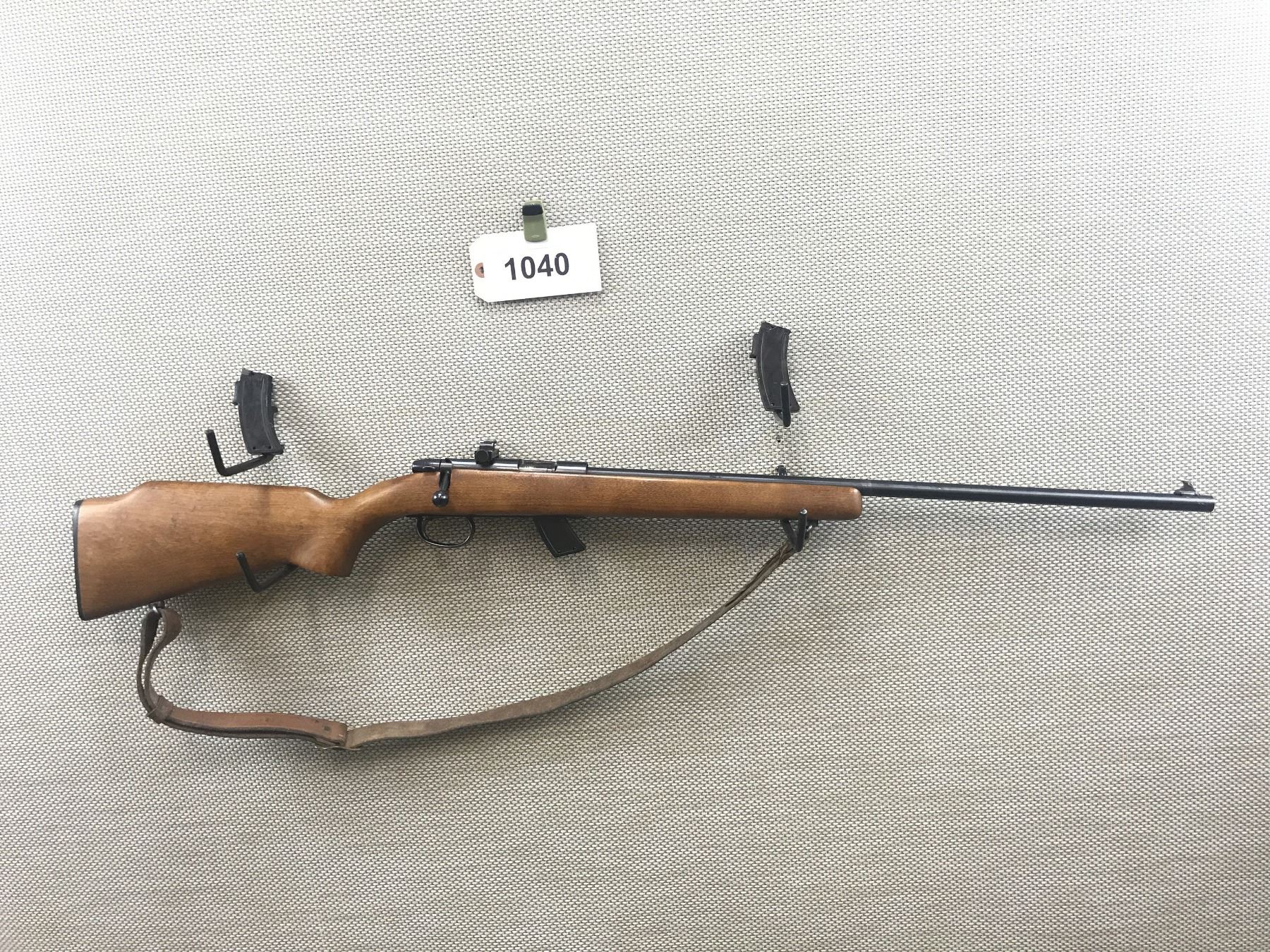 REMINGTON , MODEL: 581 , CALIBER: 22 LR , COMES WITH 3 MAGAZINES, VERY GOOD BORE, BLADE FRONT AND PEEP APERTURE REAR SIGHT, SHOWS SOME HANDLING MARKS, LEATHER SLING ATTACHED , BARREL LENGTH: 24" , SERIAL # 1284829 , STOCK # 8409 , CONDITION: 6/10 , CLASS: CANADIAN NON RESTRICTED CLASS