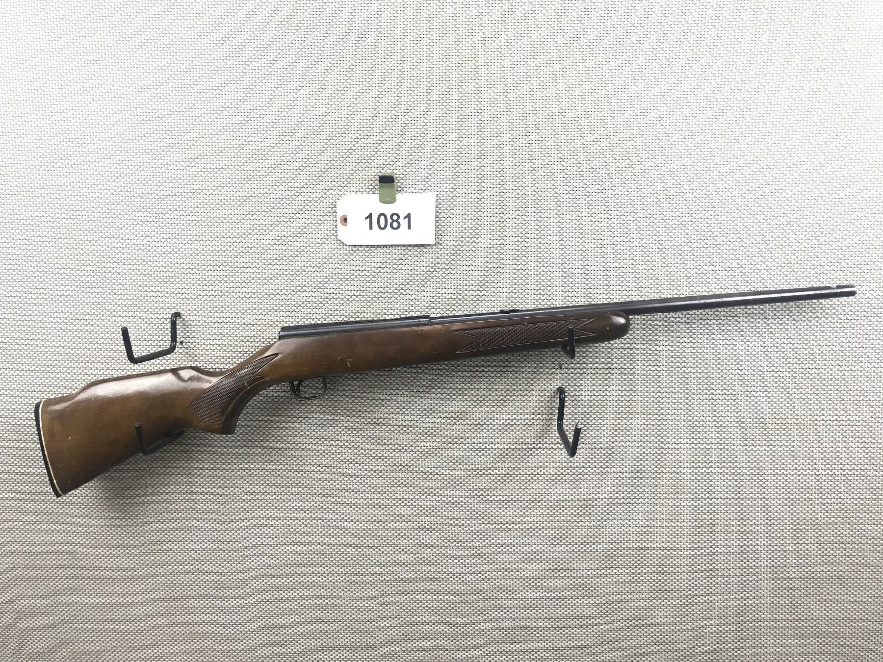 LAKEFIELD , MODEL: LEFT HANDED MARK II , CALIBER: 22 LR , DOES NOT COME WITH THE MAGAZINE, MISSING THE BOLT STOP, GOOD BORE, MISSING THE FRONT SIGHT AND BROKEN REAR SIGHT, SHOWS SOME HANDLING MARKS, CHECKERED FOREND AND SEMI PISTOL GRIP BUTT STOCK WITH PLASTIC BUTT PLATE , BARREL LENGTH: 21" , SERIAL # 276498 , STOCK # 8450 , CONDITION: 3/10 , CLASS: CANADIAN NON RESTRICTED CLASS