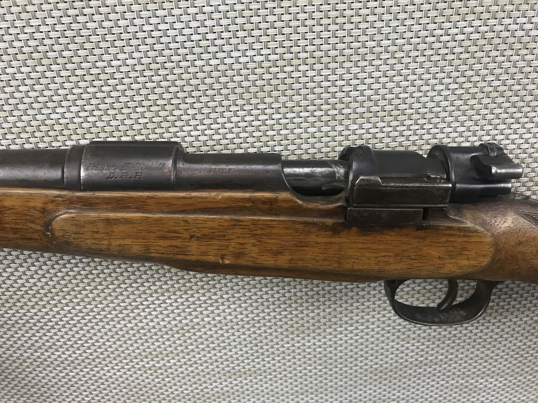 MAUSER , MODEL: REMO II , CALIBER: 12GA X 2 3/4" , FIXED FULL CHOKE, RINGED AND PITTED BORE, SHOWS EXTENSIVE HANDLING MARKS, SLING SWIVEL STUDS, STEEL BUTT PLATE, BEAD FRONT SIGHT , BARREL LENGTH: 27 1/2" , SERIAL # N/A , STOCK # 8462 , CONDITION: 4/10 , CLASS: CANADIAN NON RESTRICTED CLASS