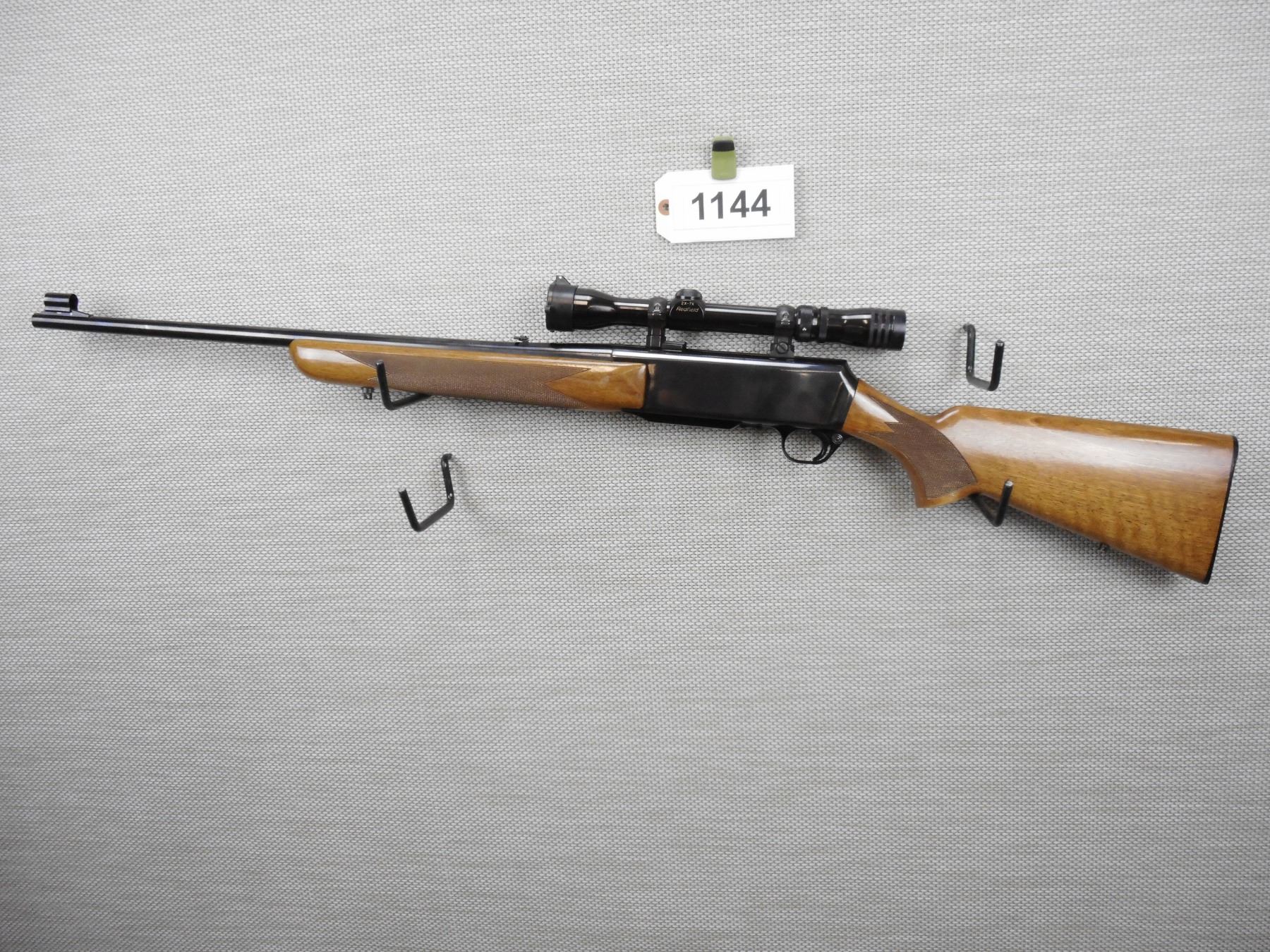 BROWNING , MODEL: BAR , CALIBER: 270 WIN , COMES WITH MAGAZINE, VERY GOOD BORE, SLING SWIVEL STUDS, EQUIPPED WITH A REDFIELD 2 X 7 SCOPE, HOODED FRONT SIGHT AND FLIP REAR SIGHT, CHECKERED FOREND WITH SEMI PISTOL GRIP BUTT STOCK AND PLASTIC BUTT PLATE, SHOWS VERY LITTLE HANDLING MARKS , BARREL LENGTH: 22" , SERIAL # 92057M69 , STOCK # 8513 , CONDITION: 8/10 , CLASS: CANADIAN NON RESTRICTED CLASS