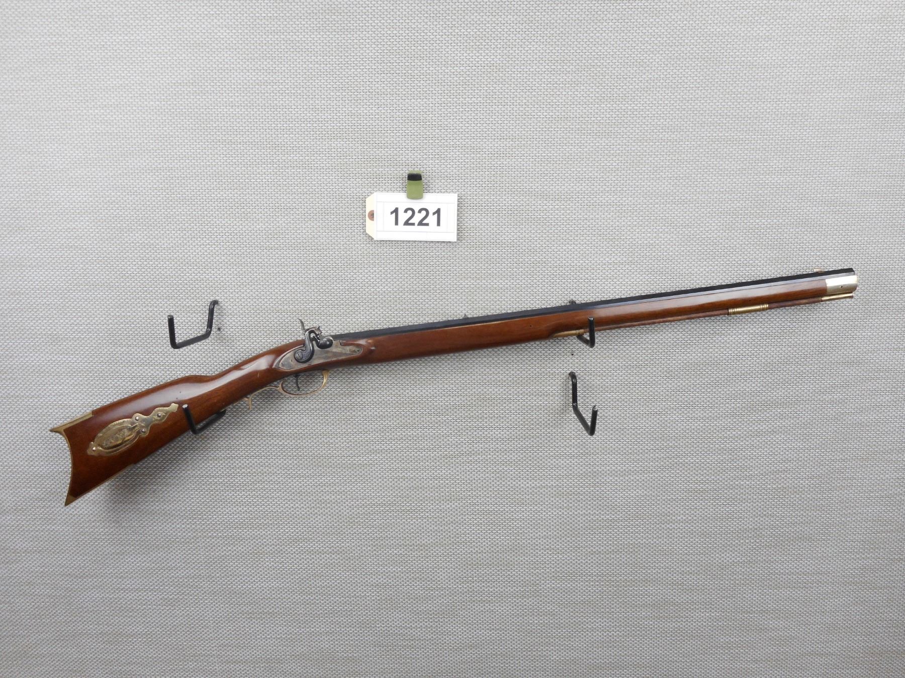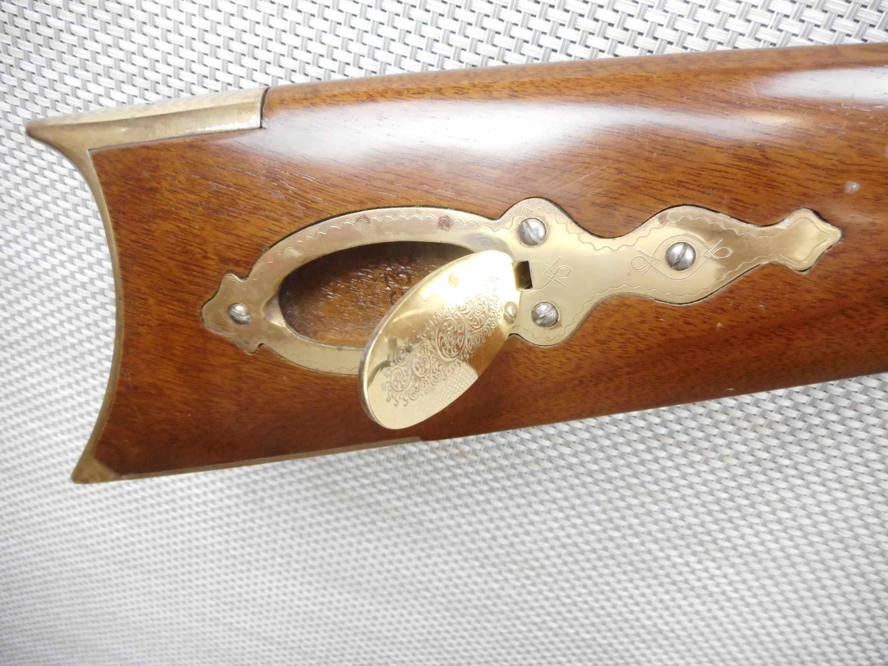 EURO ARMS , MODEL: KENTUKIAN , CALIBER: 45 CAL PERC , HAS A RAM ROD, BORE IS GOOD, LIGHTLY ENGRAVED SIDE LOCK, BRASS FINGER GROOVE TRIGGER GUARD PATCH BOX AND CRESCENT BUTT PLATE, SHOWS SOME HANDLING MARKS , BARREL LENGTH: 27" , SERIAL # 21163 , STOCK # 8590 , CONDITION: 6/10 , CLASS: CANADIAN NON RESTRICTED CLASS