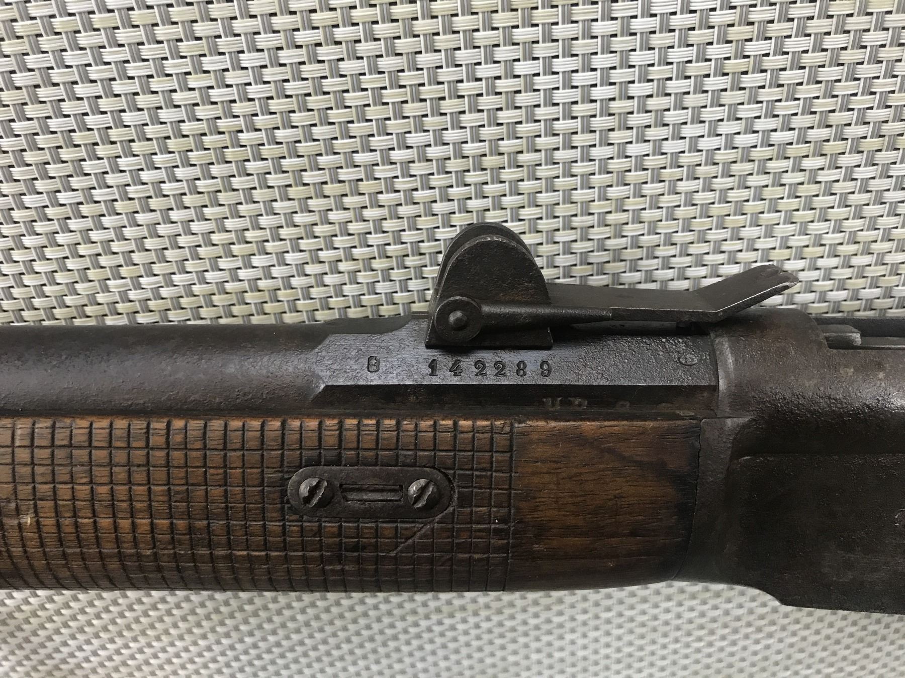 VETTERLI , MODEL: 1869/71 SWISS , CALIBER: 41 SWISS RIMFIRE , GOOD BORE, BLOCK FRONT AND ADJUSTABLE REAR SIGHTS, MISSING THE CLEANING ROD, SHOWS SOME HANDLING MARKS, LIGHTLY PITTED OVERALL, SLING SWIVEL LOOPS, STEEL BUTT PLATE , BARREL LENGTH: 33" , SERIAL # 142289 , , CONDITION: ANTIQUE 5/10 , CLASS: CANADIAN ANTIQUE CLASS