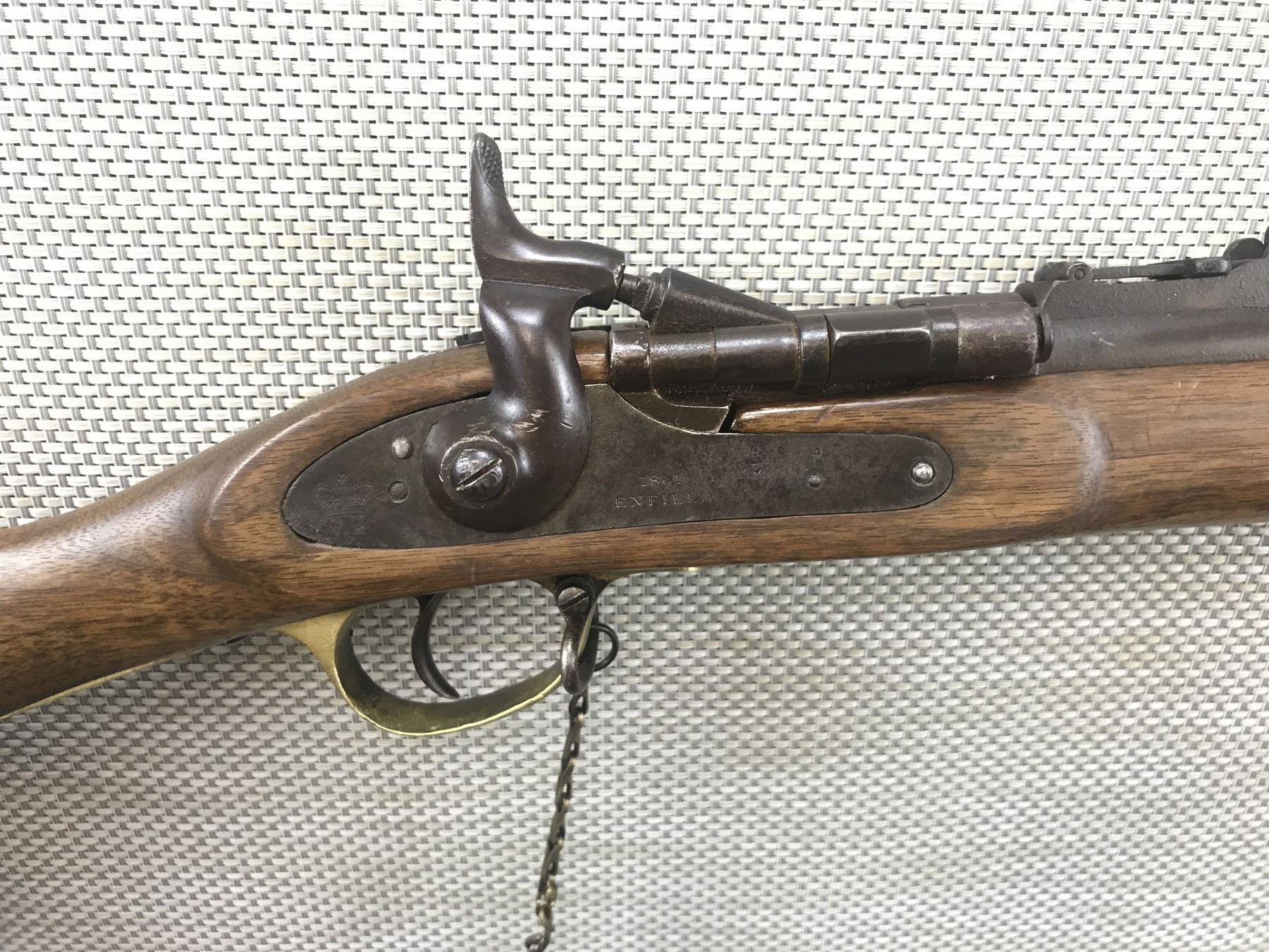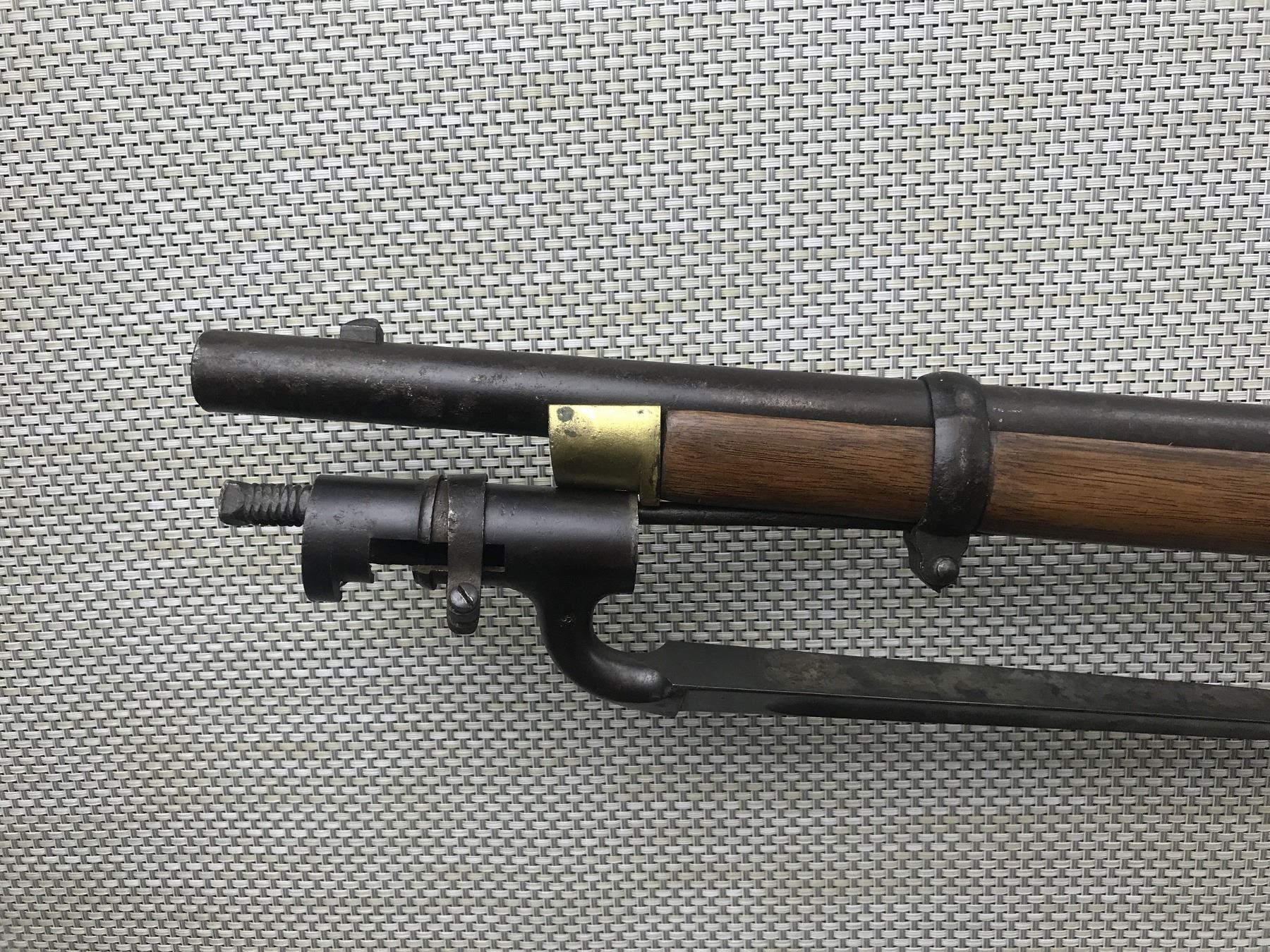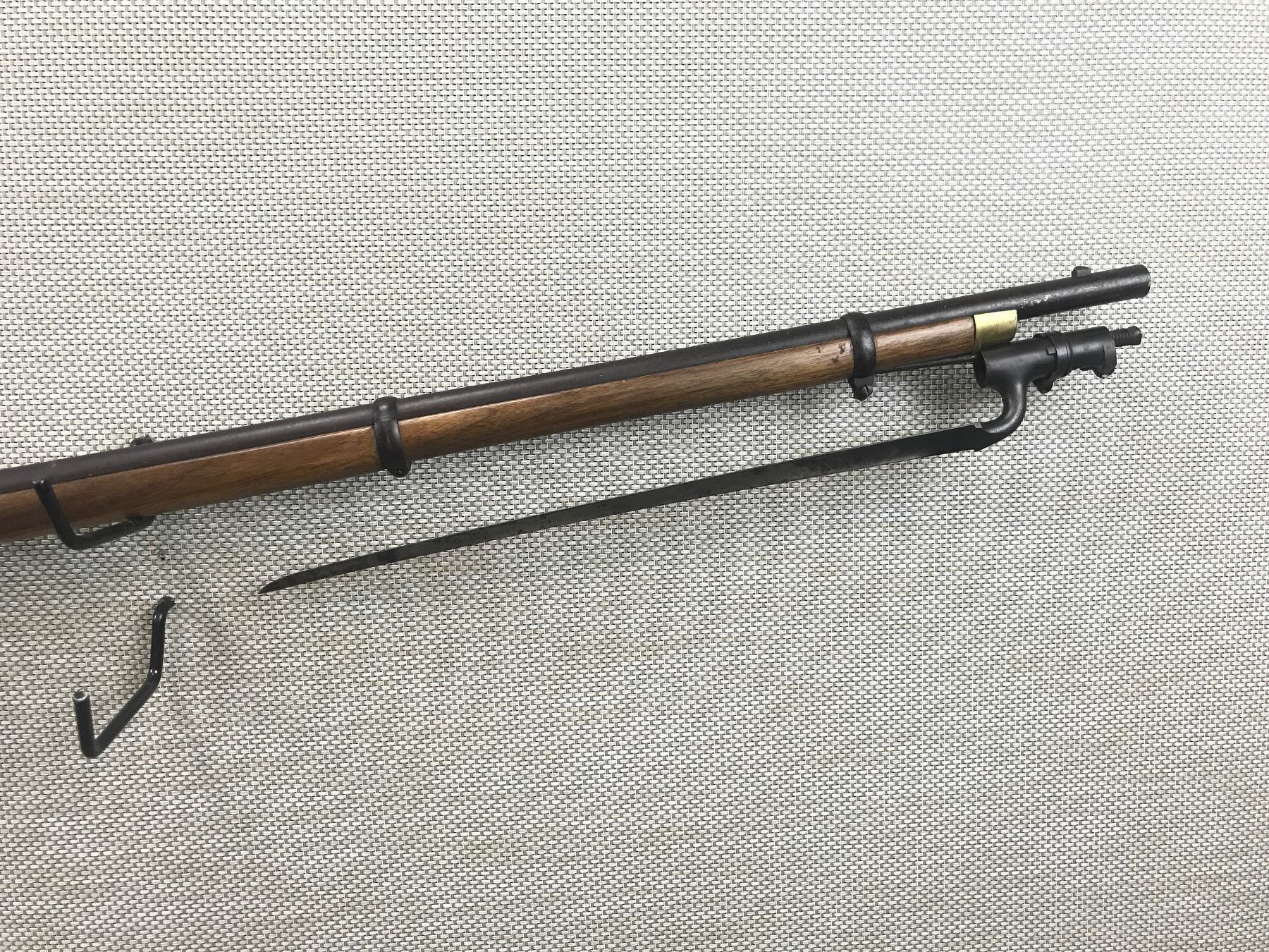 SNIDER ENFIELD , MODEL: MK** III BAND RIFLE , CALIBER: 577 SNIDER , DATED 1861, STOCK APPEARSTO BE REPLACED, ORGINAL RAM ROD, DARK BORE, BLOCK FRONT AND ADJUSTABLE REAR SIGHTS, RETAINS ORIGINAL NIPPLE PROTECTOR, WEAK SEAR, SHOWS SOME HANDLING MARKS , BARREL LENGTH: 39" , SERIAL # N/A , , CONDITION: ANTIQUE 4/10 , CLASS: CANADIAN ANTIQUE CLASS
