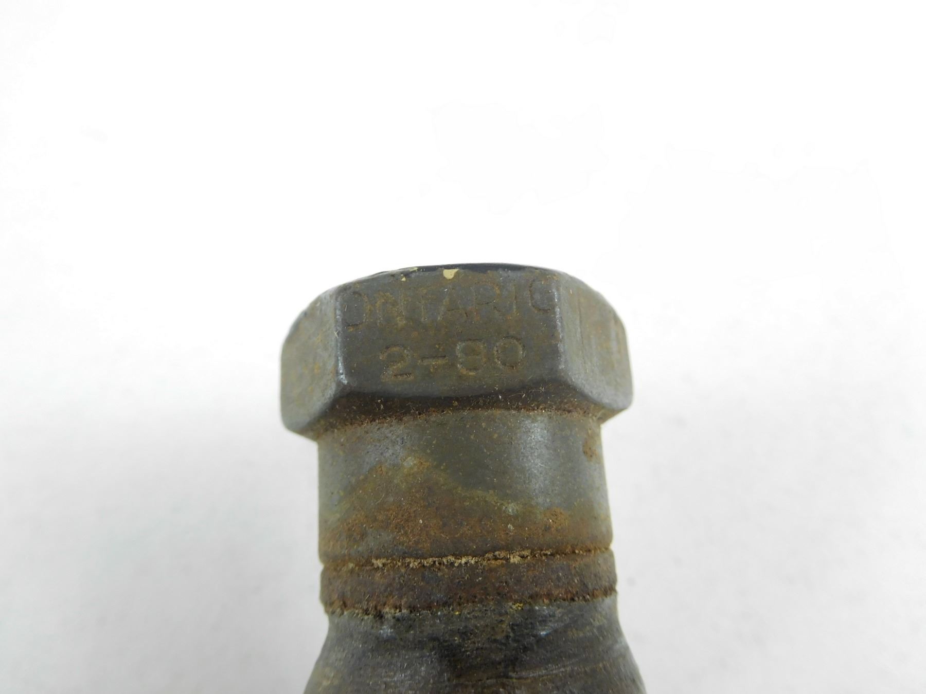 VINTAGE ONTARIO PILOT SURVIVAL/COMBAT KNIFE WITH SHEATH, MARKED ONTARIO 2-80 ON THE POMMEL , LEATHER SHEATH