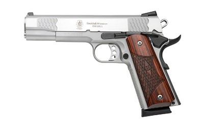 Smith & Wesson, 1911, E Series, Semi-automatic, 45 ACP, 5" Barrel, Stainless Steel Frame, Stainless Frame, Wood Grip, 3 Dot Sight, 8 Rounds, 2 Magazines