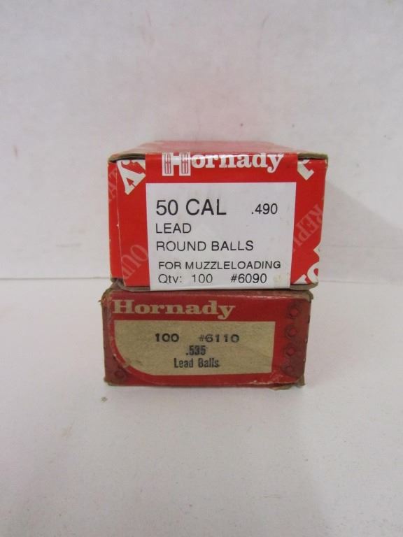 ONE BOX OF HORNADY .490 LEAD ROUND BALLS AND ONE BOX OF HORNADY .535 LEAD ROUND BALLS.