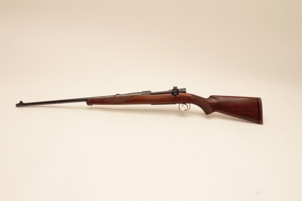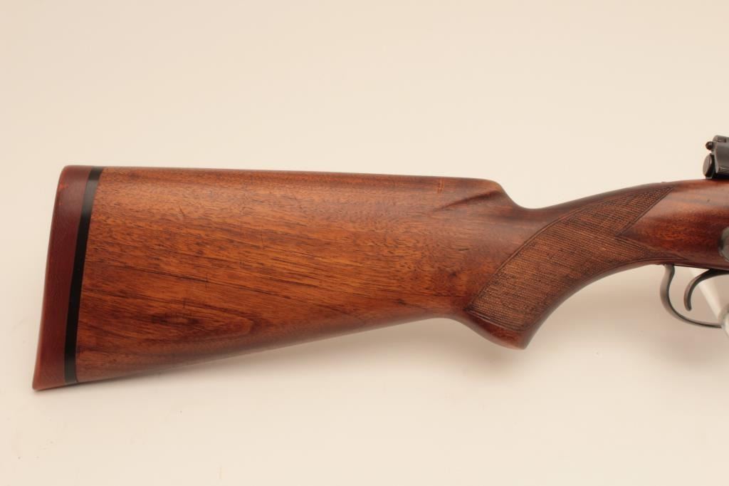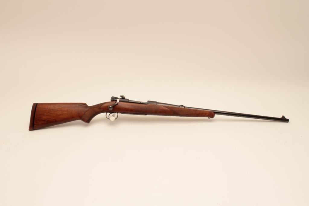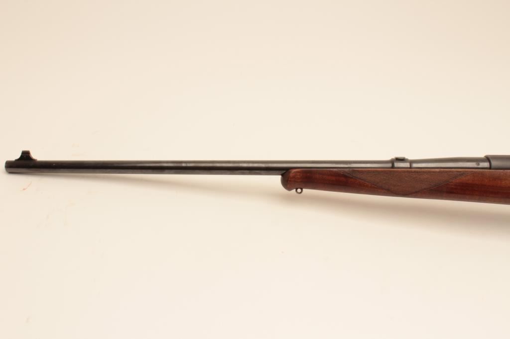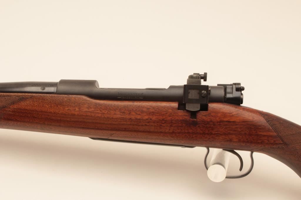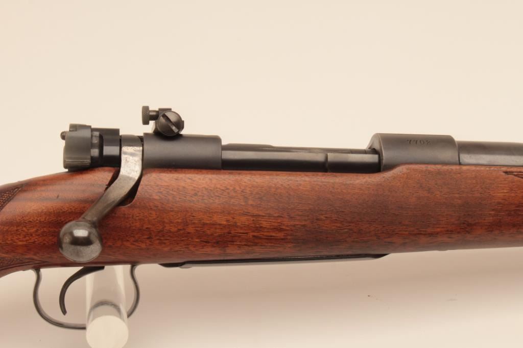 Winchester Model 54 Pre-War .30-06 bolt action sporting rifle with nickel steel barrel, S/N 7702. Very good condition with 80%-90% original blue. Stocks lightly refreshed and the wood was repaired. Redfield receiver sight added. Winchester marked rubber recoil pad. Good bore. (C&R) Est.: $700-$1400
