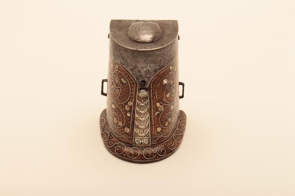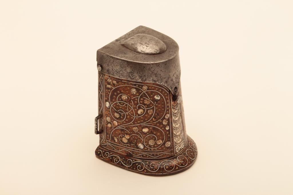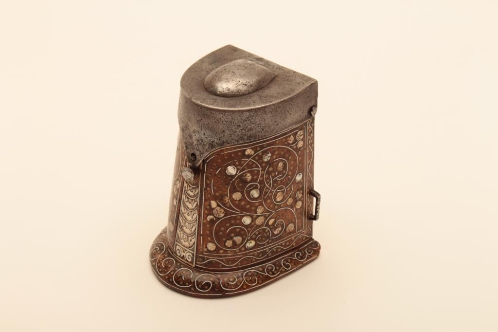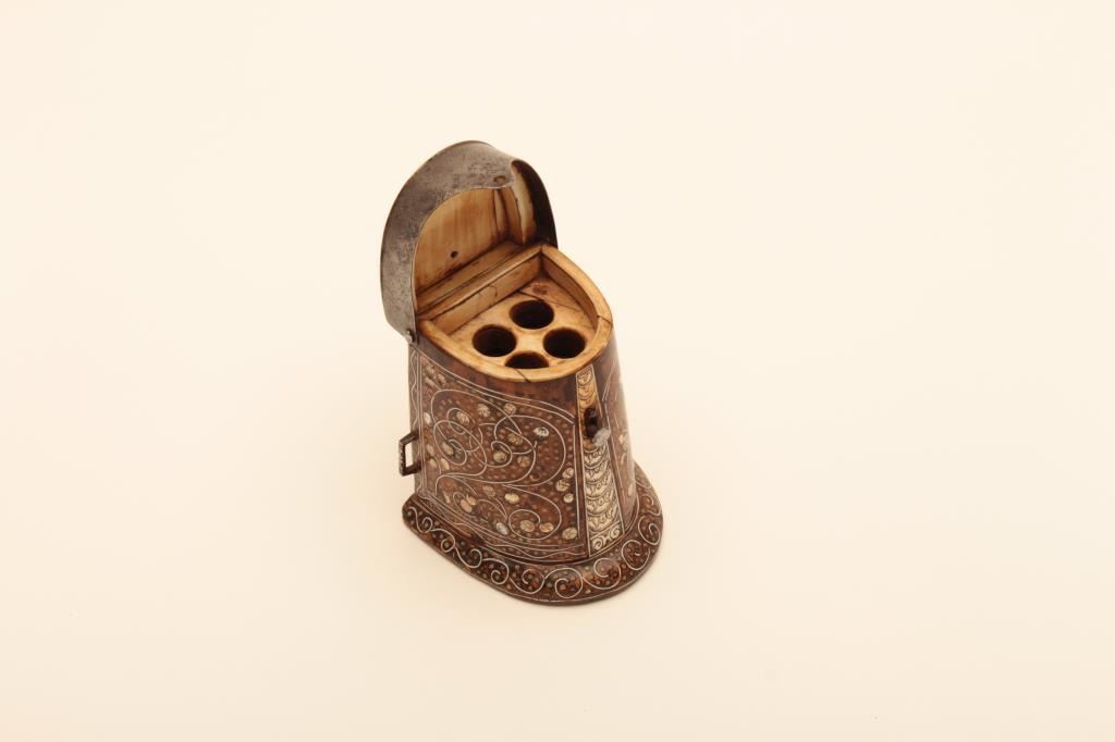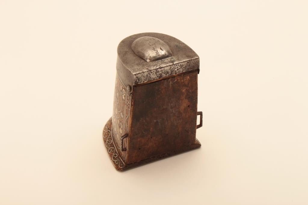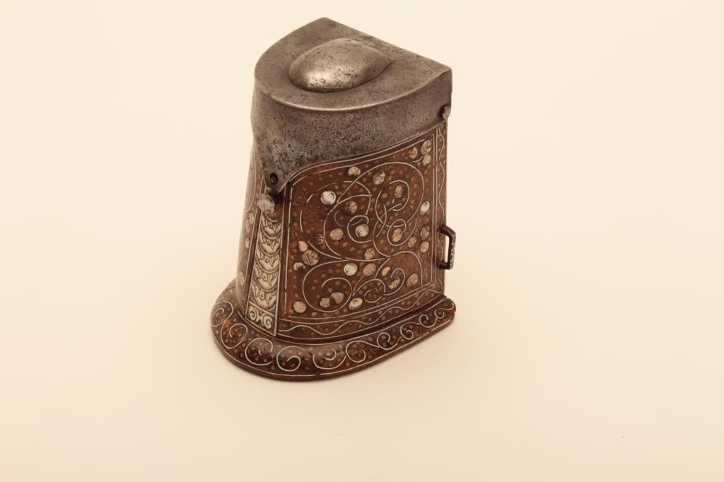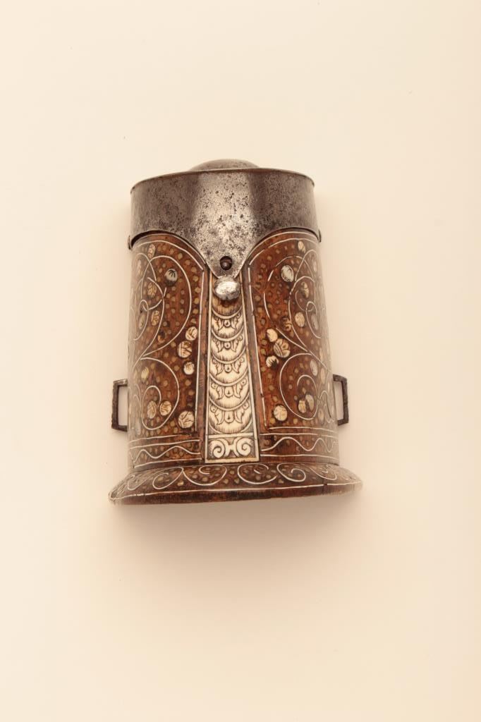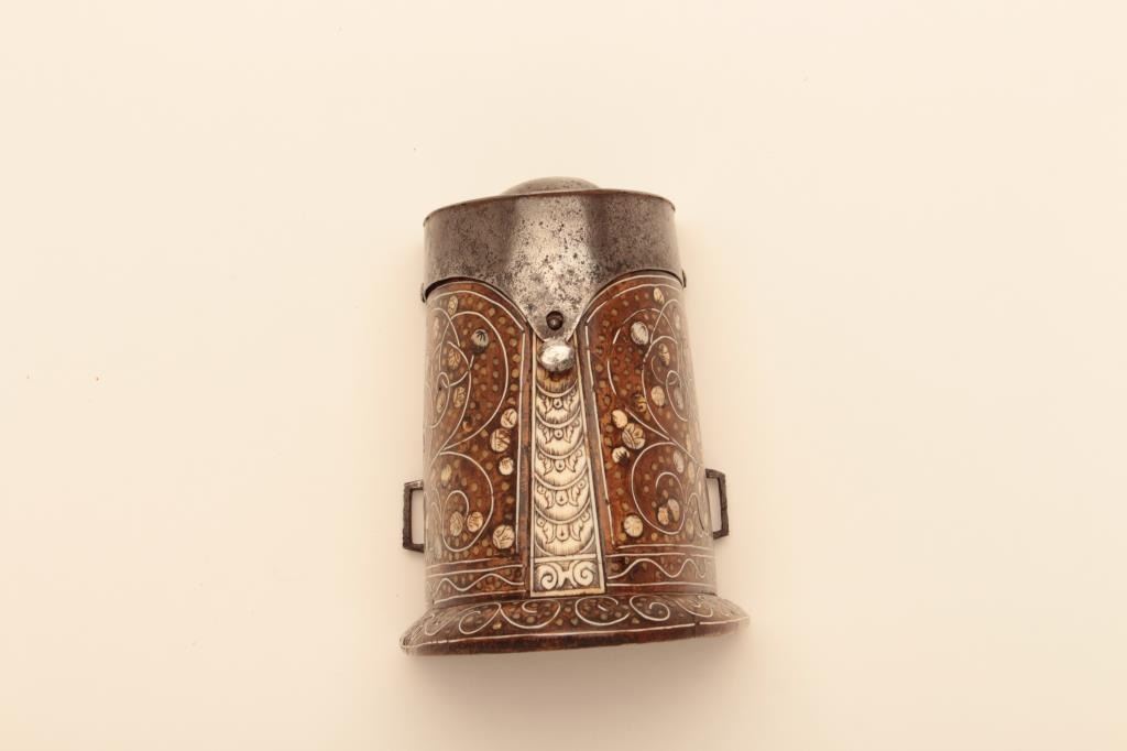Saxon style inlaid patron for linen cartridges circa 1580-1650 (Wheelock Era) with forged iron mountings. Shows extensive professional restoration that is expertly done by a master craftsman. The restorationis hard to detect and absolutely correct in style. (Antique) Est.: $1500-$3000