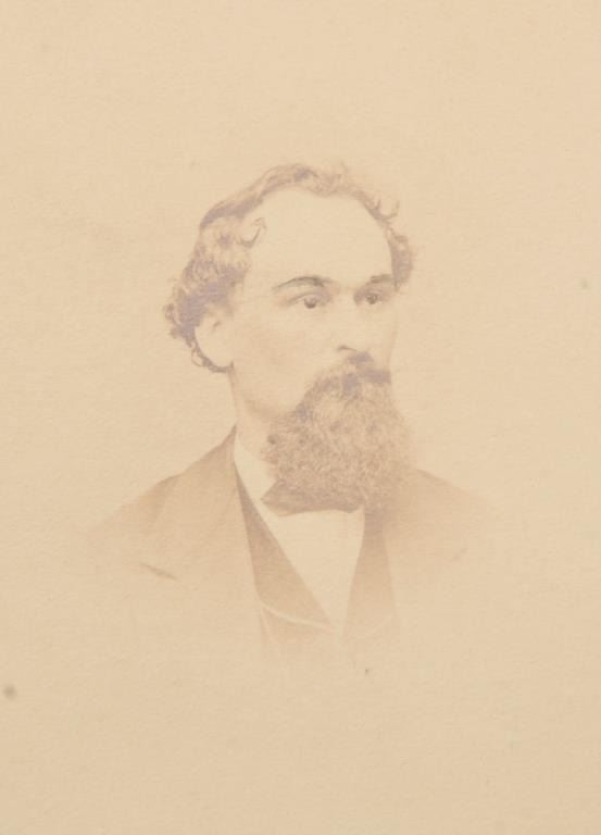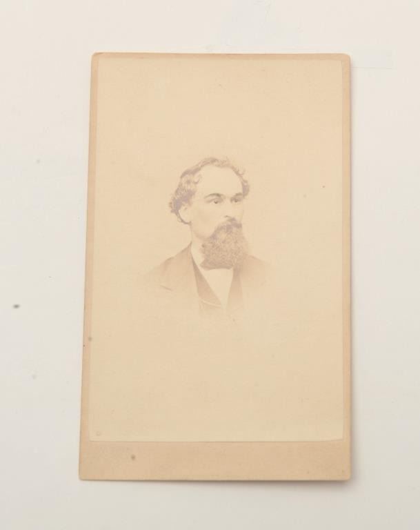Important Civil War Officer’s Model 1850 sword and brass mounted metal scabbard belonging to our consignor’s Great Grandfather Colonel Ellwood Kirby. The sword and scabbard are un-cleaned with a pleasingdark patina to the scabbard and decorated brass mounts; the blade is in very good + condition with majority of original polish and beautiful spread eagle and U.S. etched panels; the grip shows its wire-wrappedrayskin with the guard and pommel displaying a taffy colored patina that is also un-cleaned. Also accompanying this lot is an original CDV of Colonel Kirby, taken by H. C. Phillips, N.W. corner Ninth and ChestnutStreets, Philadelphia. According to the consignor, Kirby was born in 1830 in Shelltown, New Jersey into a Quaker farming family. At a young age, he emigrated to Missouri. He became a civil engineer with the railroads and served as a civil engineer, bridge builder and draftsman until the spring of 1861. At the beginning of the Civil War he was commissioned as a Major and Adjutant to Governor Hall and was in charge of a
