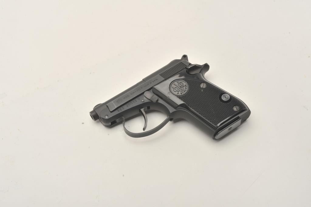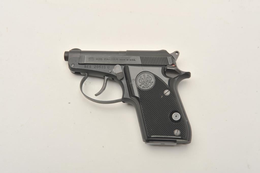 Beretta 21A semi-automatic pistol, .22 LR caliber, Serial #BES20531U. The pistol is in very good overall condition with a 2 ½” barrel. The metal surfaces retain the majority of their matte blue finish withlight high point edge wear and wear at the muzzle. The checkered plastic grips are in good condition showing little wear. The bore is good, the action is crisp and markings are sharp. The lot includes one correct,Beretta marked magazine. Est.: $150-$300. (Modern/PPT).