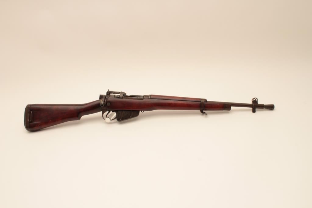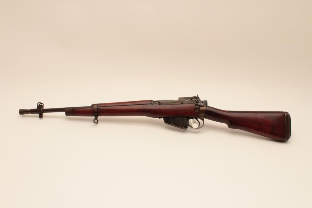 Enfield No 5 Mk 1 Jungle Carbine, #4407, .303 Brit cal., 20 1/2" barrel, blue finish, military stock. Rifle is in good condition overall as arsenal reworked, bolt numbered to the gun. Bore and action are very good,wood is very good for a surplus rifle. (C&R) Est. $300-600
