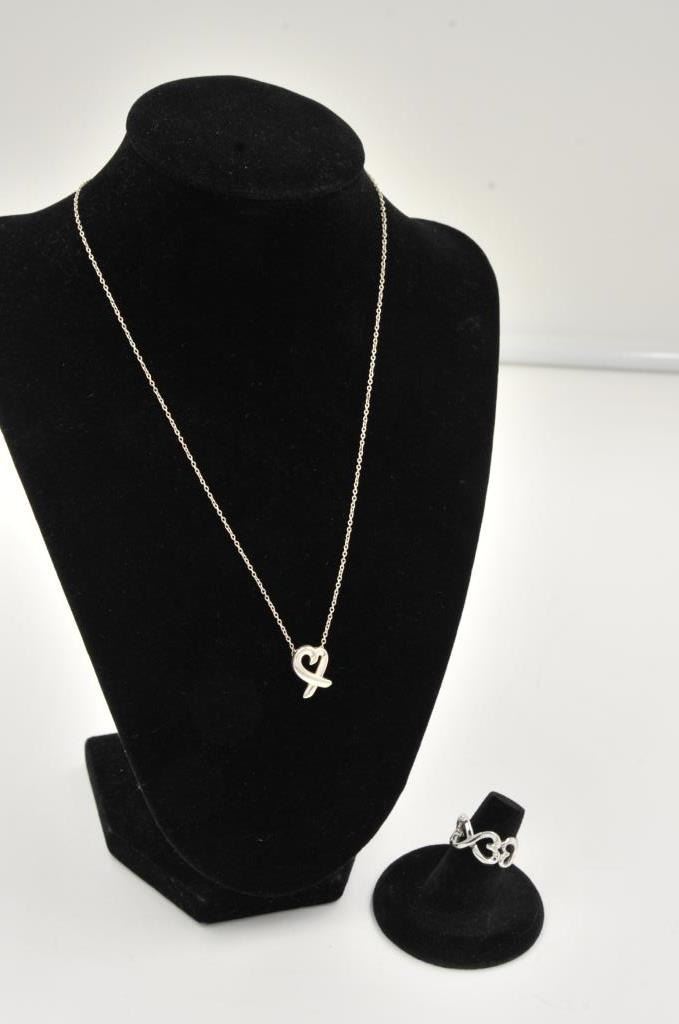 One Tiffany & Co heart necklace signed by Paloma Picaso in sterling silver with matching heart band not Tiffany Est:$200-400