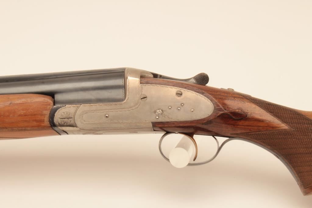 Zepher (Honker) 10GA single barrel shotgun imported from Spain by Stoeger New York in the 1950s to 60s, S/N AM136814. The barrel measures 36 ½”with vent rib and side lock action. Measures 14 ½” to the end of the oldrubber pad. Very good plus condition showing many scratches to the butt stock or would be near fine. Locks tight with bright bore. (Modern) Est.: $500-$1000