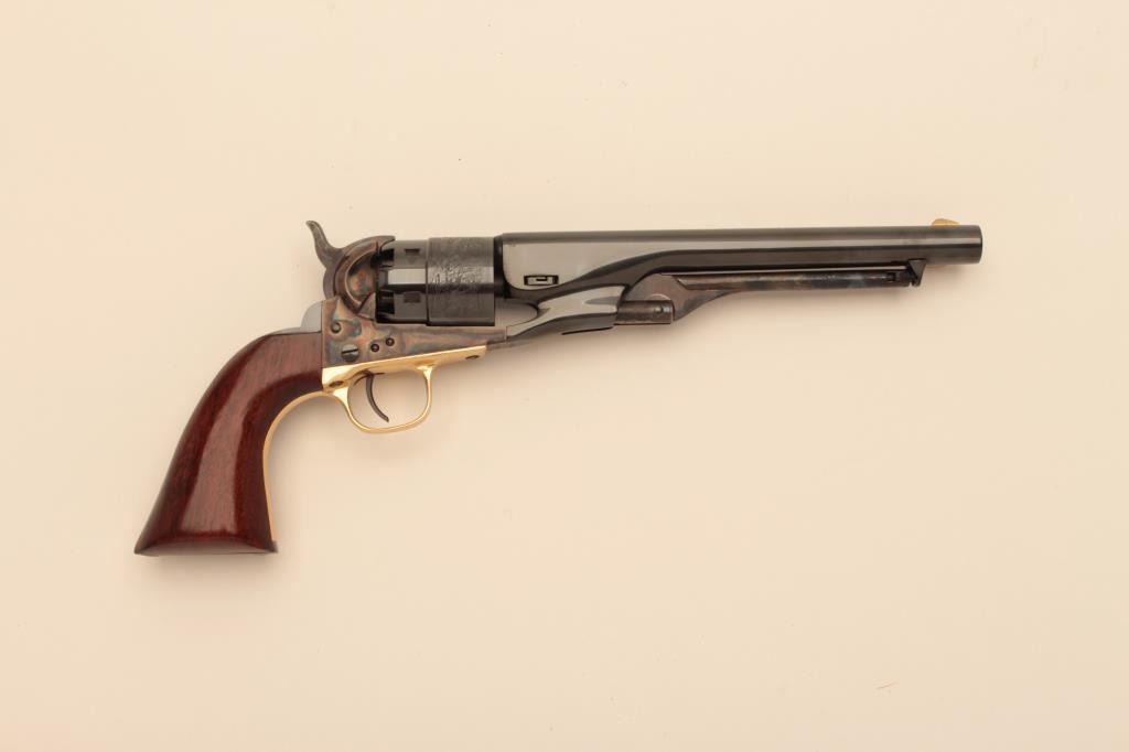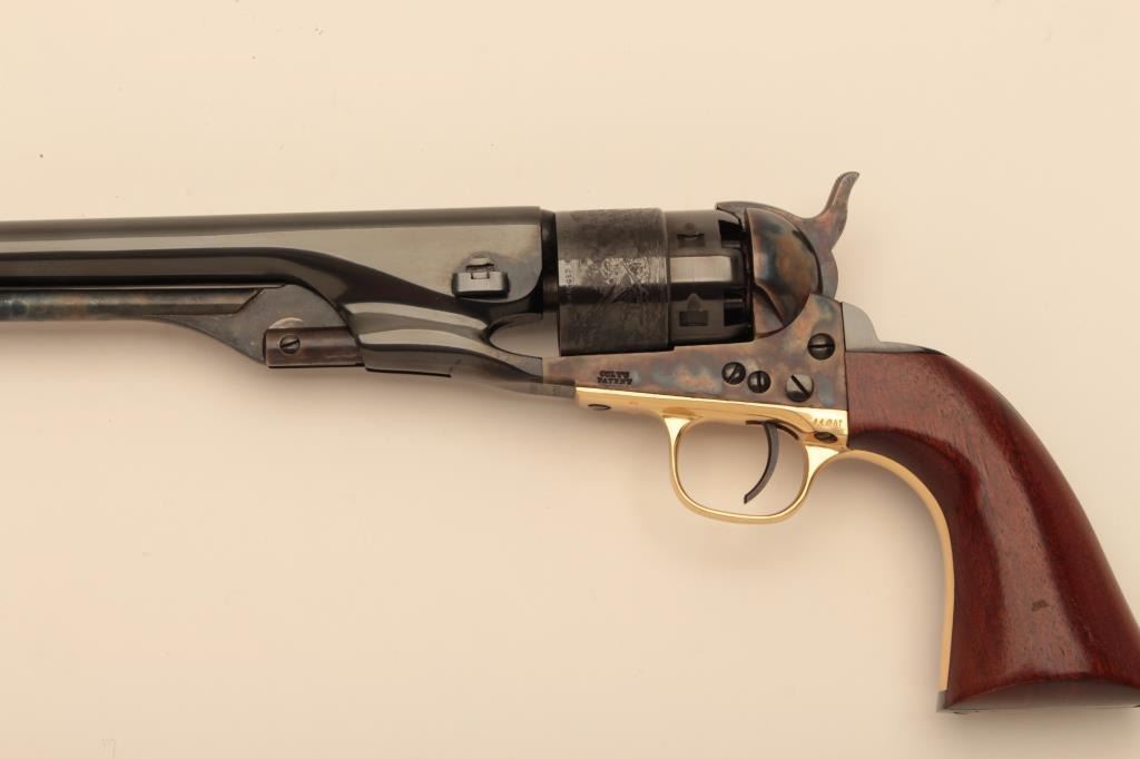 Colt New Black Powder Series 1860 Army revolver in .44 caliber percussion, S/N 215713. Signature Series. 98%-99% overall. Storage marks on grips. Limited to no firing. (Percussion) Est.: $250-$500