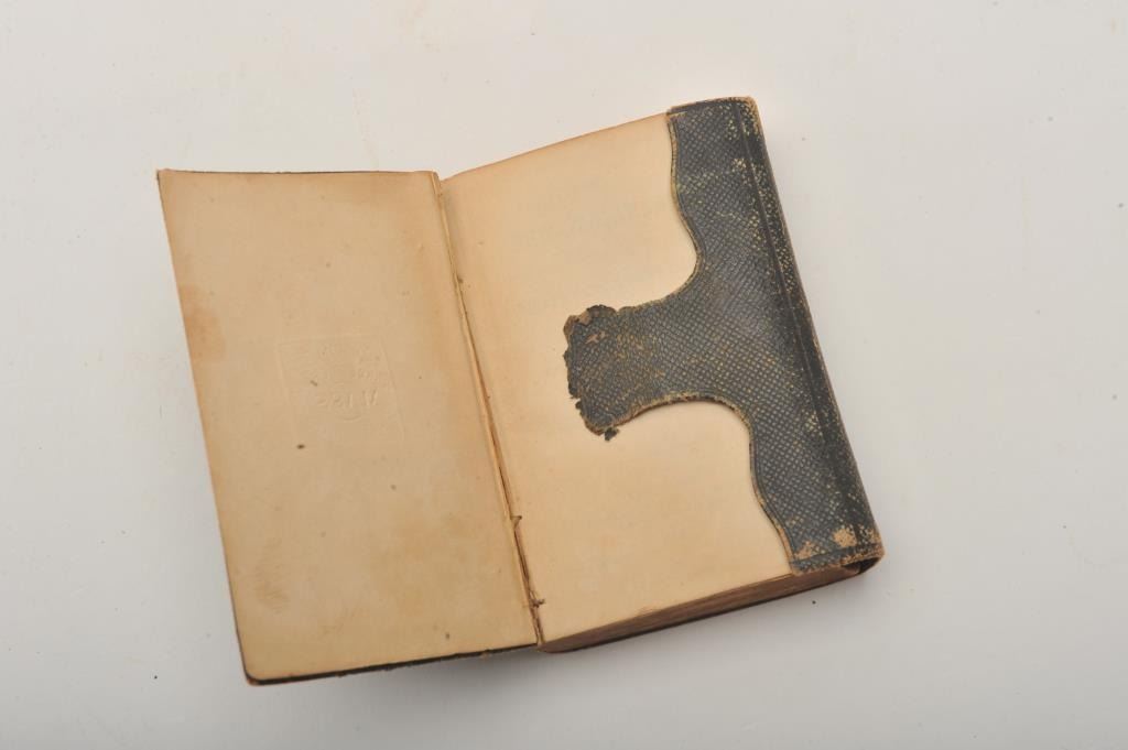 Civil War pocket Bible inscribed in front “Edwin D. Wood/Westboro, Mass/Co. E 51st Regiment/Mass Volunteers”. Est.: $125-$250.
