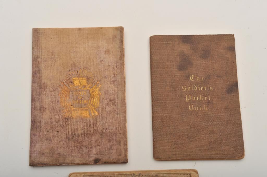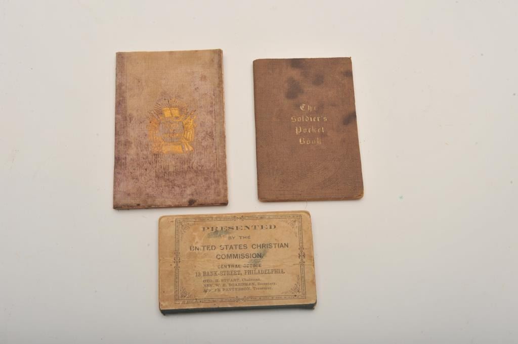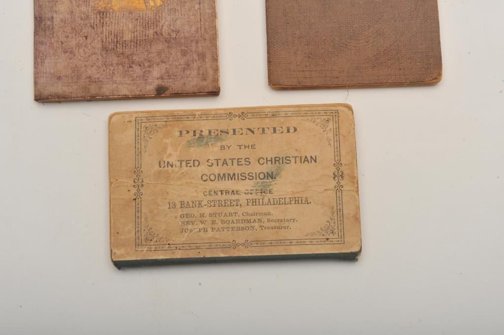 Lot of 3 Civil War pocket books including a U.S. Christian Commission Hymn book, a soldiers pocket hymn book and a pocket book entitled “Hints to Officers in the Army and Navy”. Est.: $75-$150.