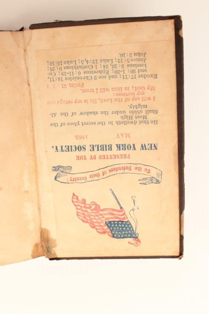 New York Bible Society 1862 pocket Bible for Civil War soldier. Est.: $50-$100.