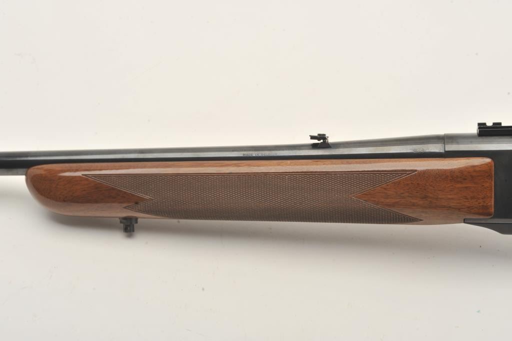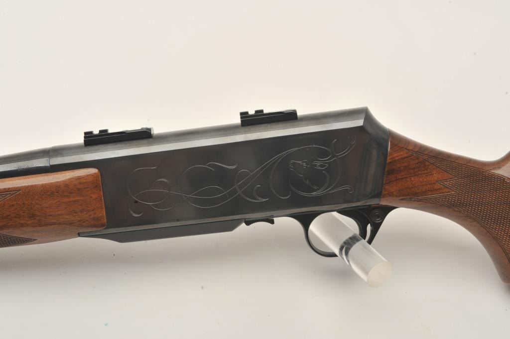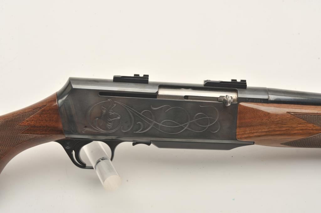Belgian-made Browning BAR Model semi-automatic rifle, .30-06 caliber, 23” barrel, blued finish, checkered wood stocks, S/N 17414M69, in overall fine to excellent condition with a fine bore, crisp action,sharp markings and fine wood stocks. (Modern). Est.: $350-$700.