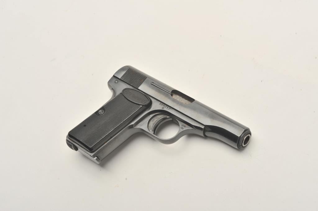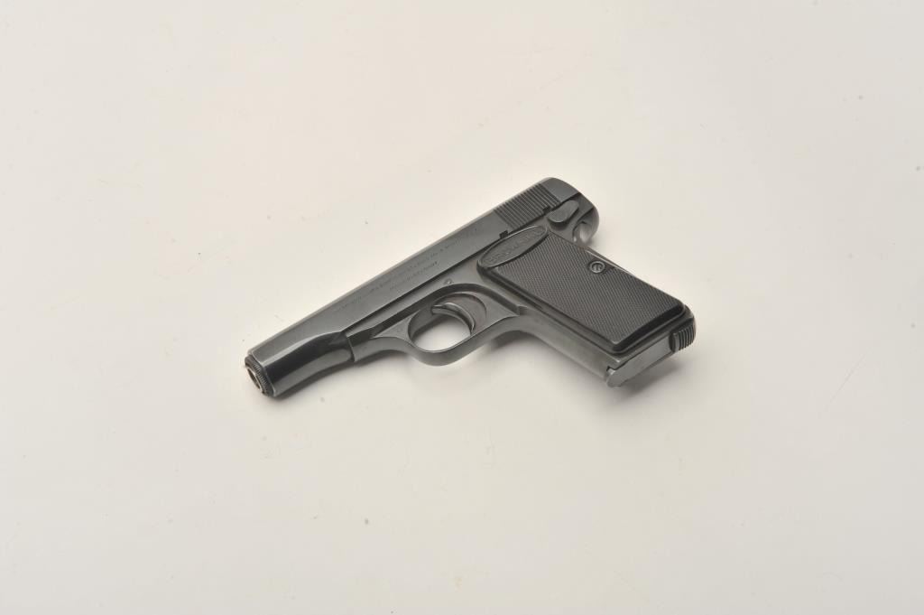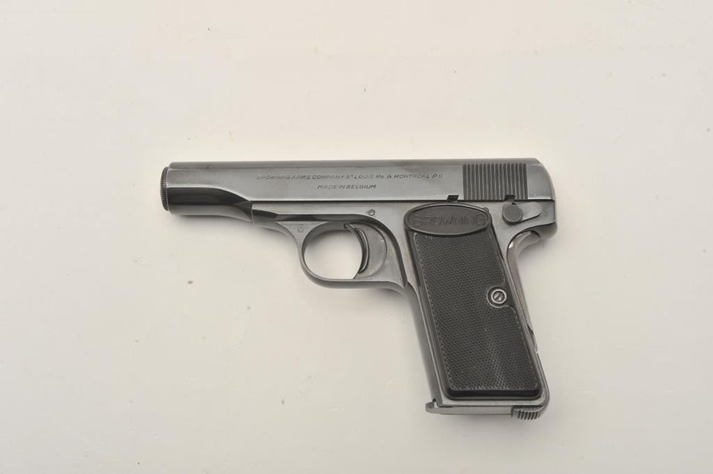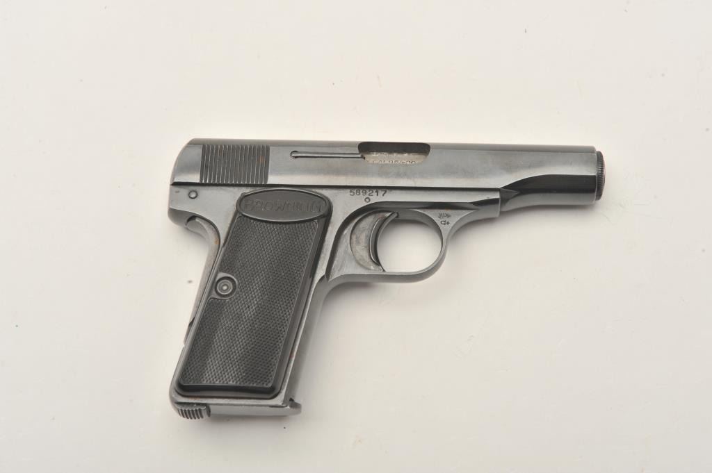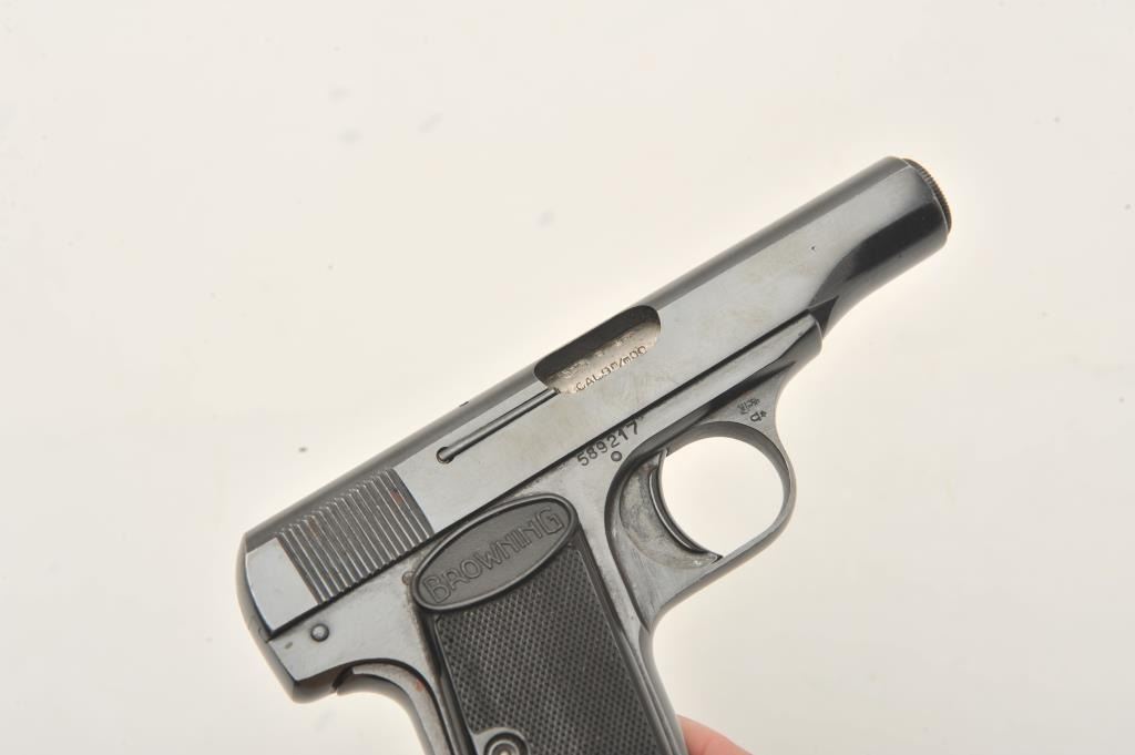 Belgian-made Browning Model 1955 semi-automatic pistol, 9mm caliber, 3.25” barrel, blued finish, checkered black grips, S/N 589217, in overall very good to fine condition displaying majority of originalblued finish to metal surfaces, good bore, crisp action, sharp markings and fine grips. (Modern/PPT). Est.: $300-$600.