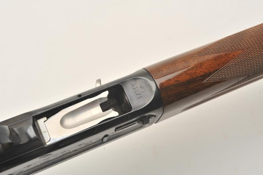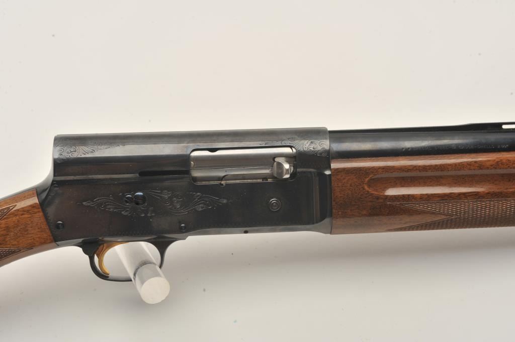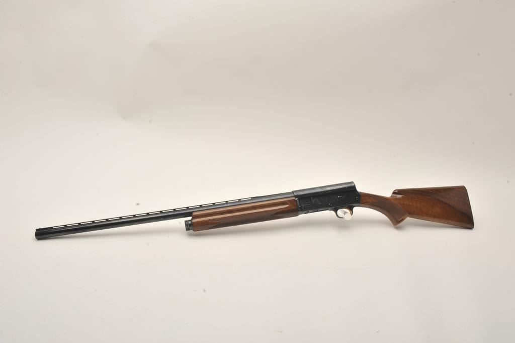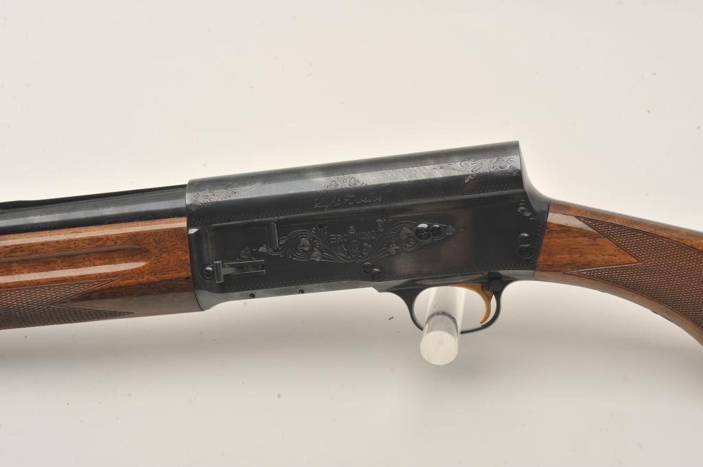 Belgian-made Browning Light Twelve Model semi-automatic shotgun, 12 gauge, 27.5” barrel, blued finish, checkered wood stocks, S/N 68656471, in overall fine to excellent condition with a fine bore, crisp action,sharp markings, crisp interior and fine wood stocks. (Modern). Est.: $350-$700.