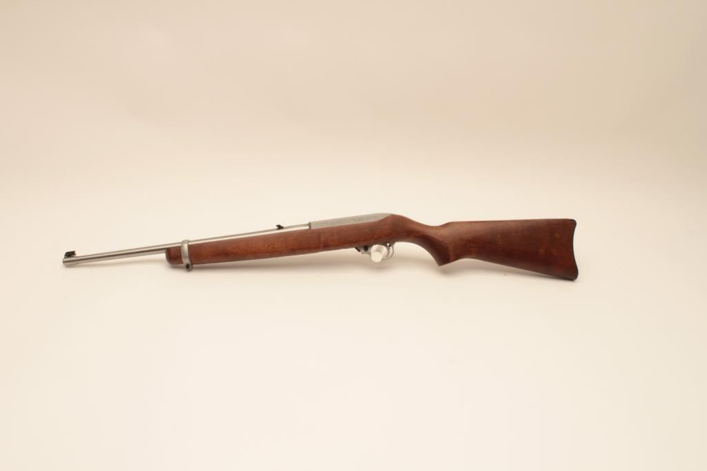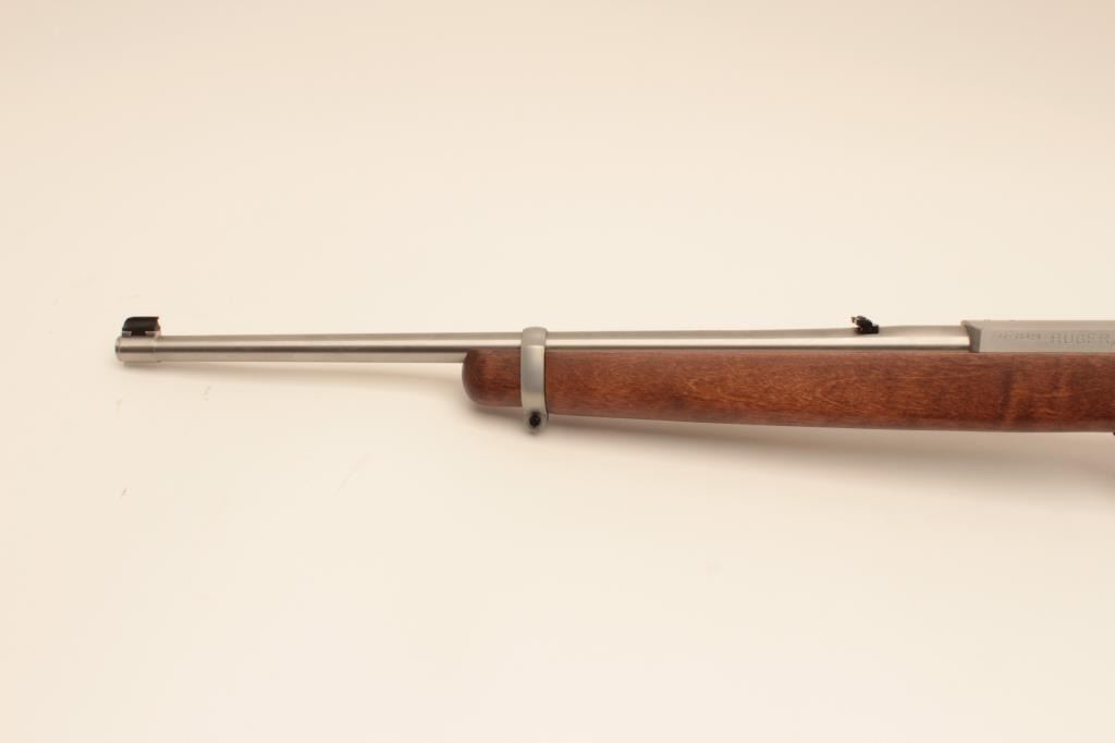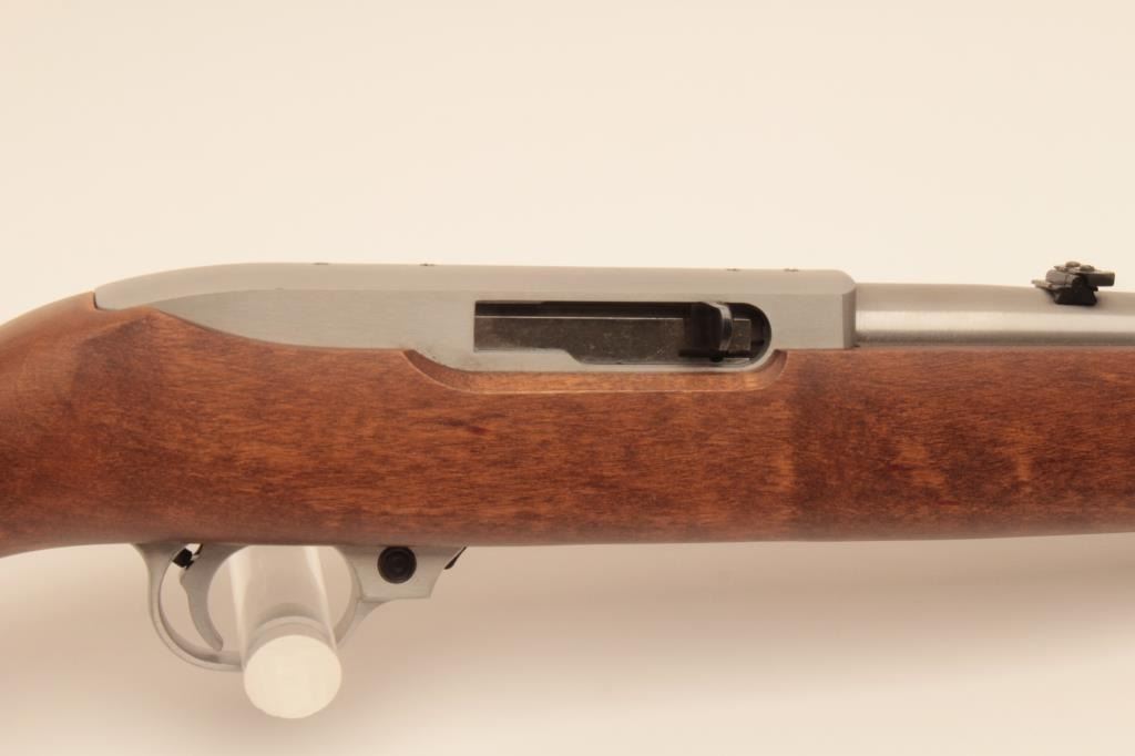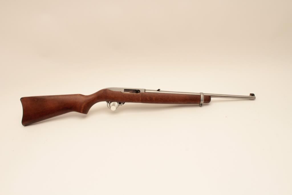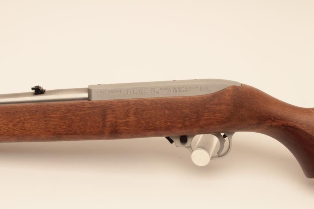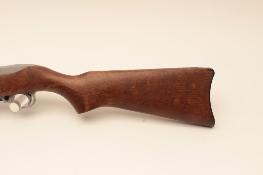 Ruger 10/22 Stainless, #247-75424, .22 LR, 18.5" barrel, smooth walnut stock. Rifle is in near fine condition overall, showing minimal scratches on the barrel behind the rear sight. Bore is excellent, action isvery good, stock is fine with minimal handling marks. One mag. (Modern) Est. $200-400