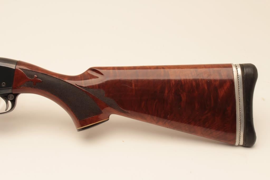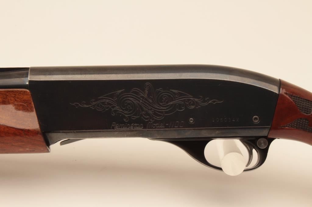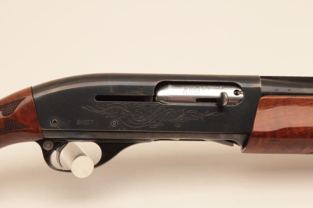Remington 1100 Skeet two barrel set, #1006034X, 20 GA semi auto shotgun, 28" vent rib barrels, deluxe wood stock with custom recoil pad. Shotgun is in very good plus condition overall, some thinning to theoriginal finish, stock is very good with no splits or cracks. Bore and action are very good. (Modern) Est $400-800