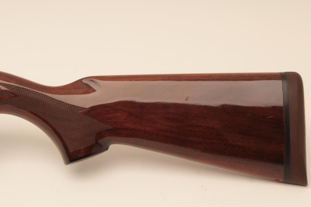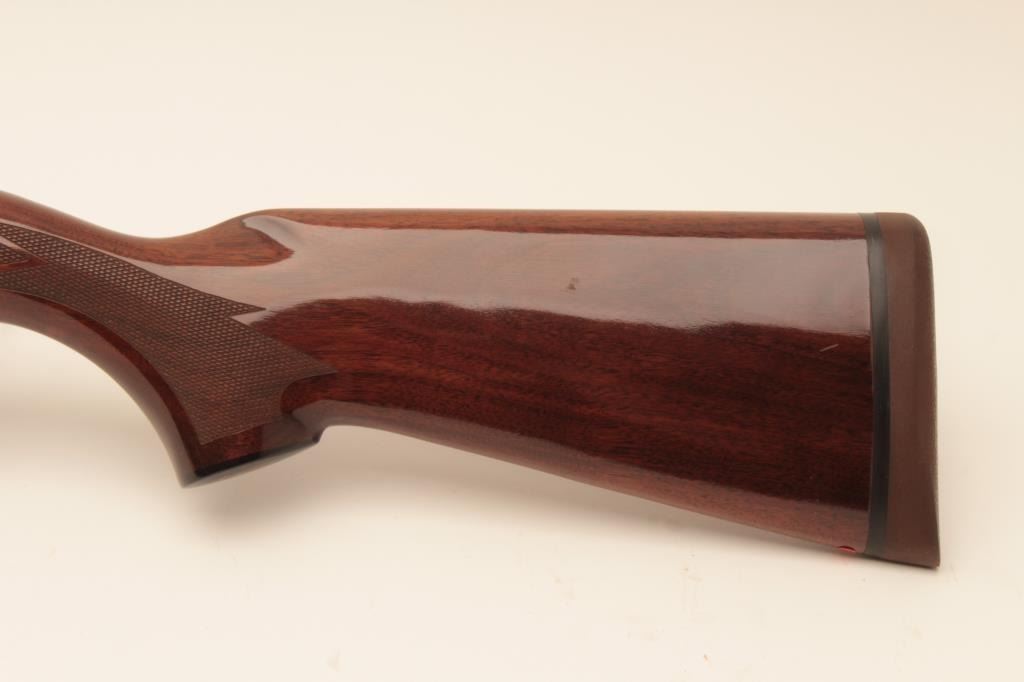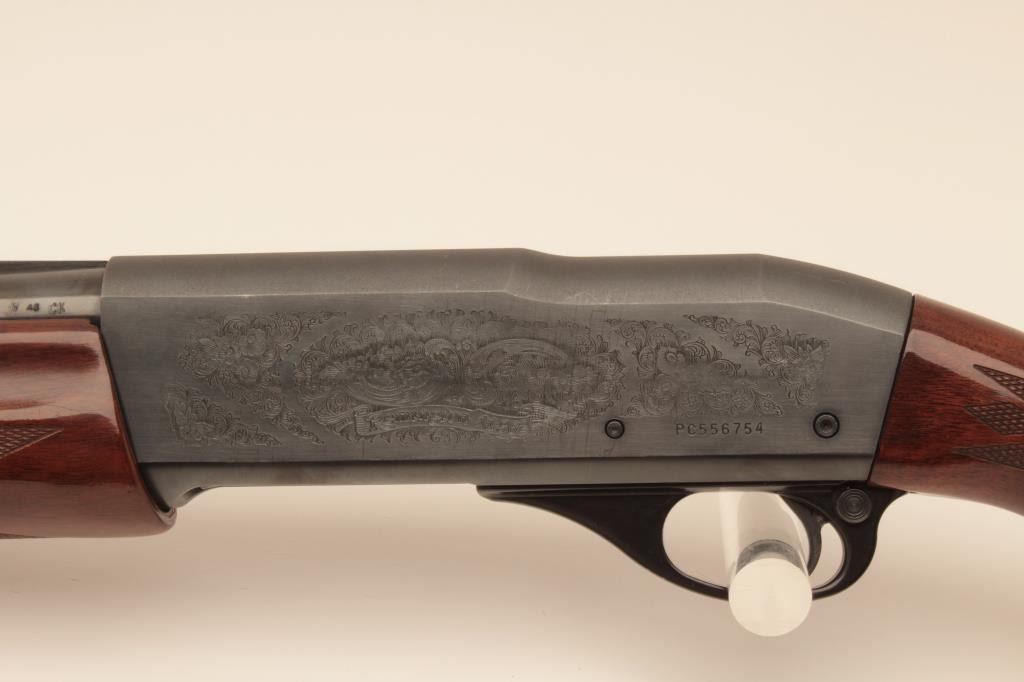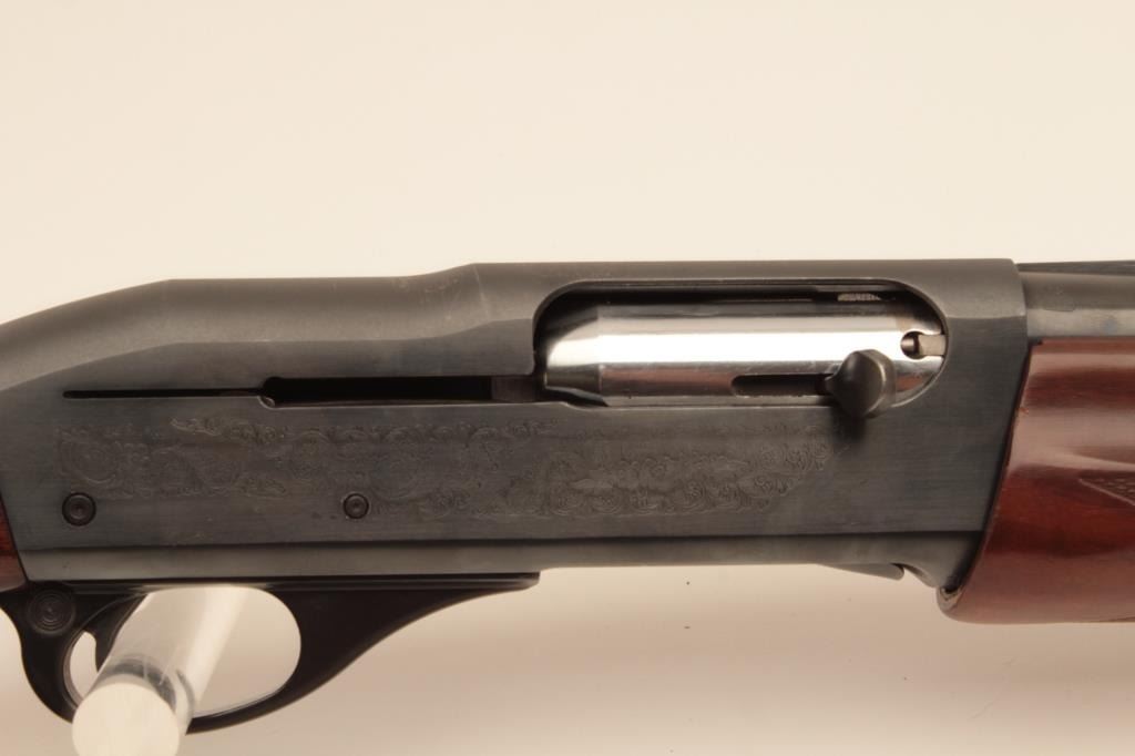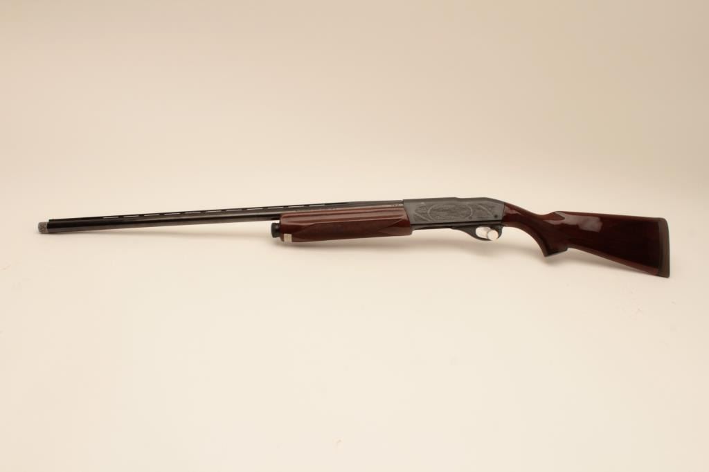 Remington 11-96 (Light Contour) 12GA Semi-Auto shotgun with a 28” vent rib barrel, 1 removable choke, S/N PC556754. Factory “Roll” engraved frame and low rise rib. Measures 14 ¼” to the end of “Decelerator”pad. Fine to excellent used condition. 95%-98% overall. Minor marks in wood. (Modern) Est.: $400-$800
