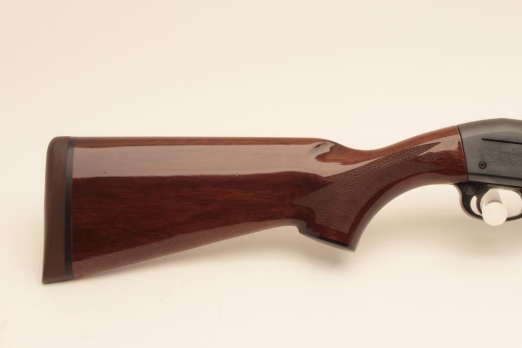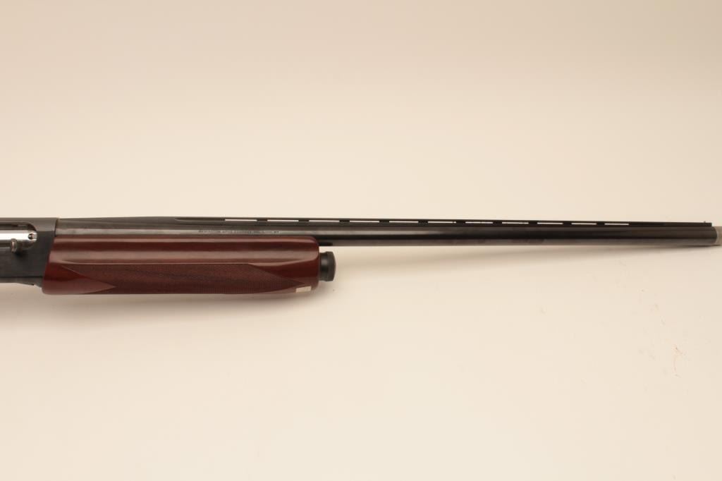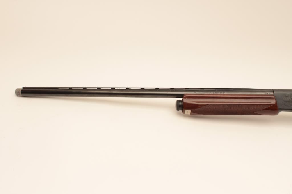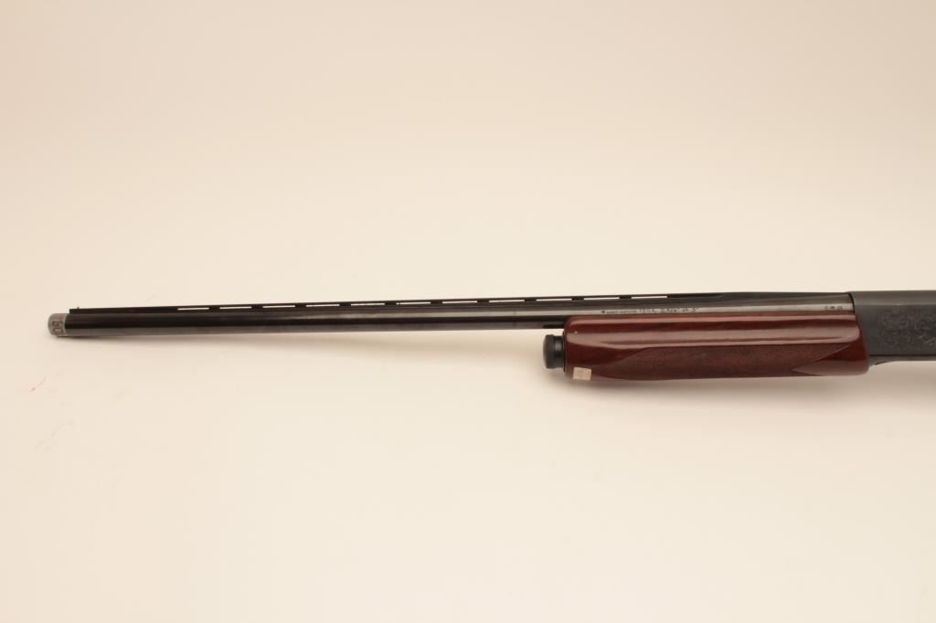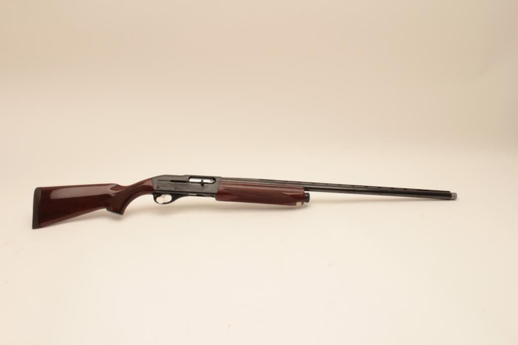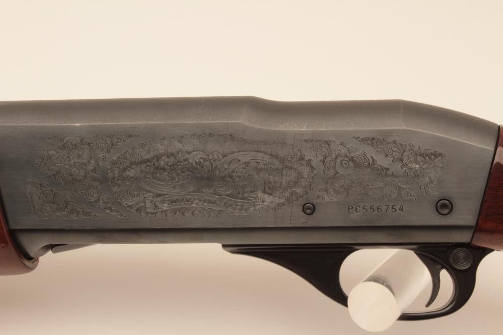 Remington 11-96 (Light Contour) 12GA Semi-Auto shotgun with a 28” vent rib barrel, 1 removable choke, S/N PC556754. Factory “Roll” engraved frame and low rise rib. Measures 14 ¼” to the end of “Decelerator”pad. Fine to excellent used condition. 95%-98% overall. Minor marks in wood. (Modern) Est.: $400-$800