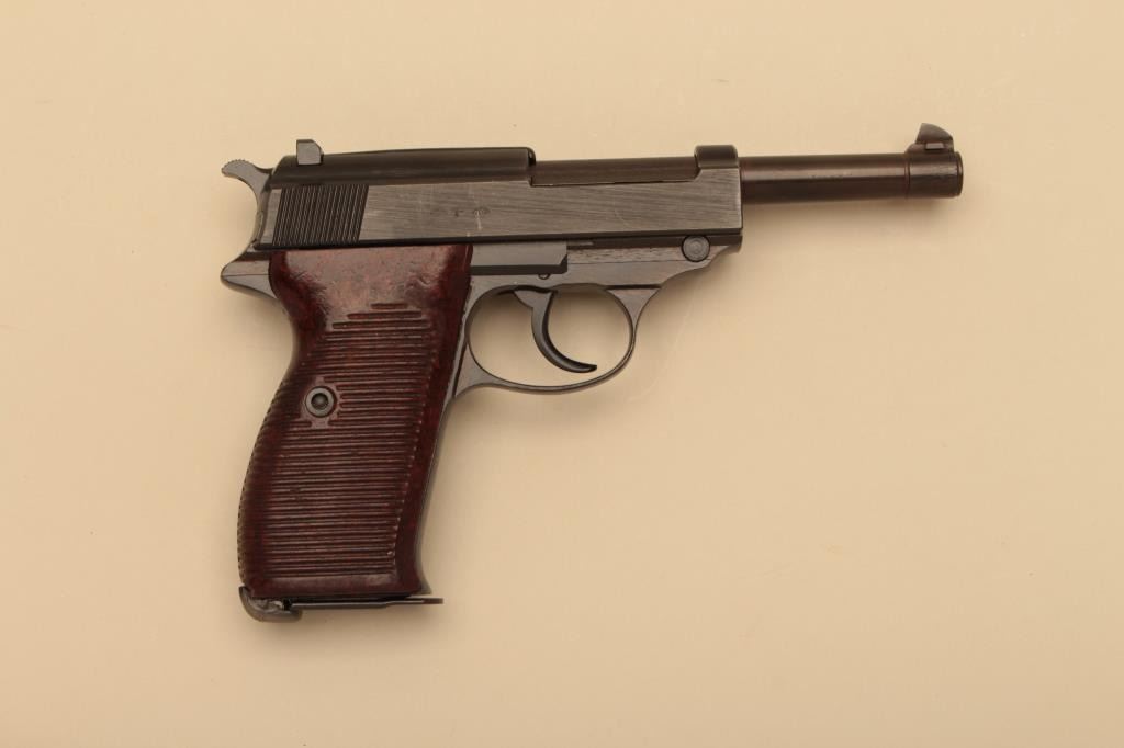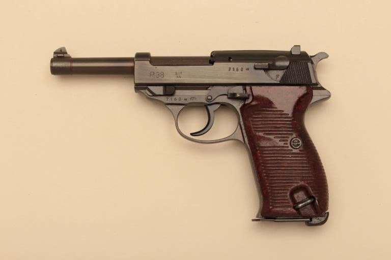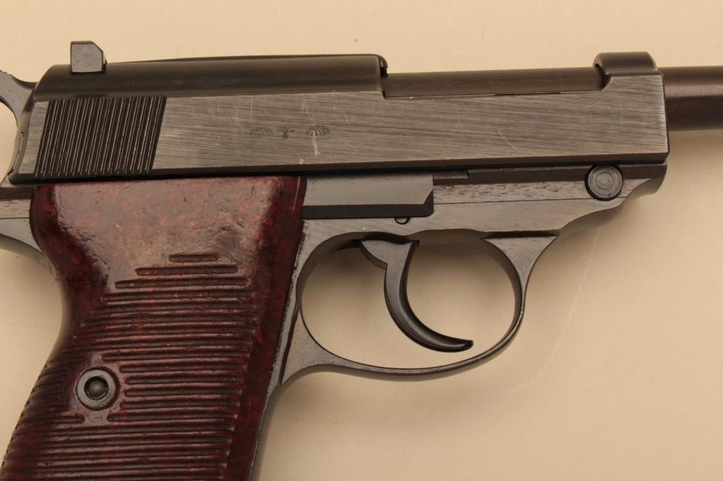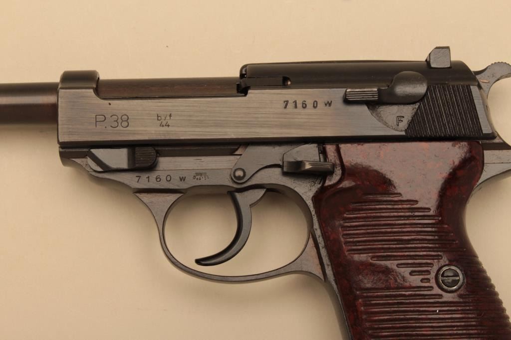Mauser BYF P-38, #7160W, 9mm, blued finish with bakelite grips. Pistol is in excellent condition, retaining 96-98% original finish, very good bore, fine grips. 44 date code, WaA135 proofed and Nazi marked. One mag.(C&R/PPT) Est. $400-800