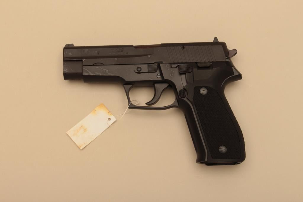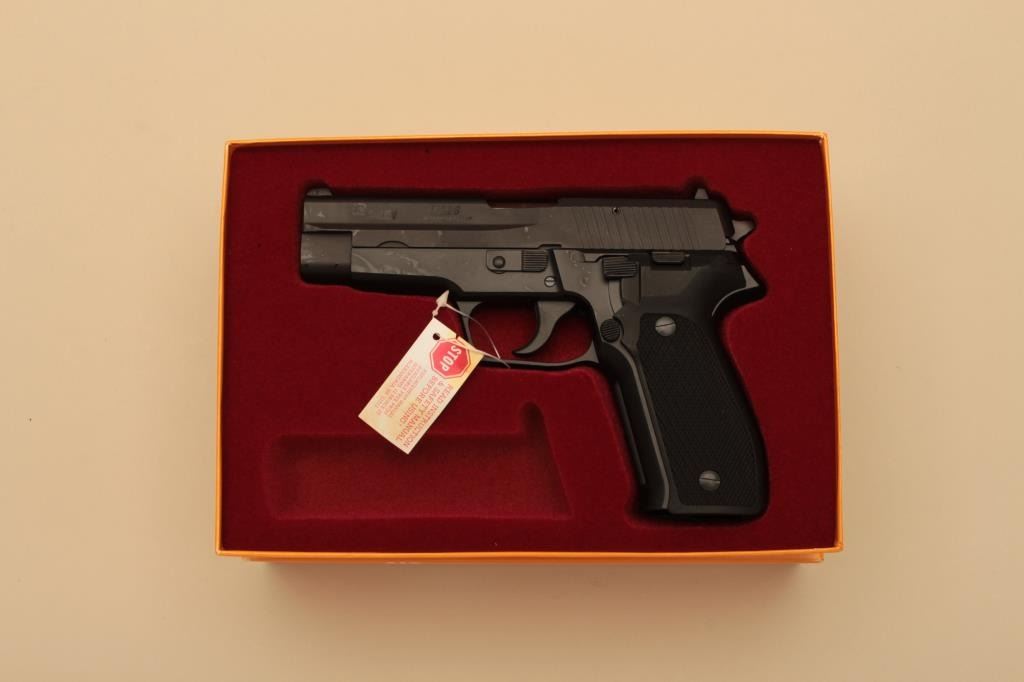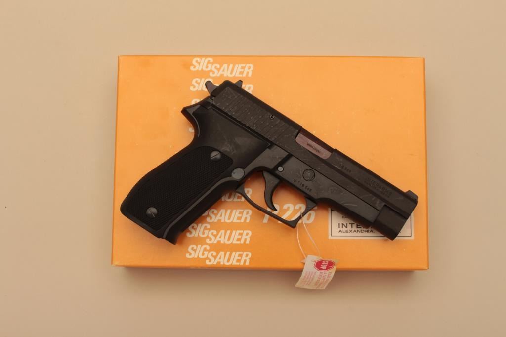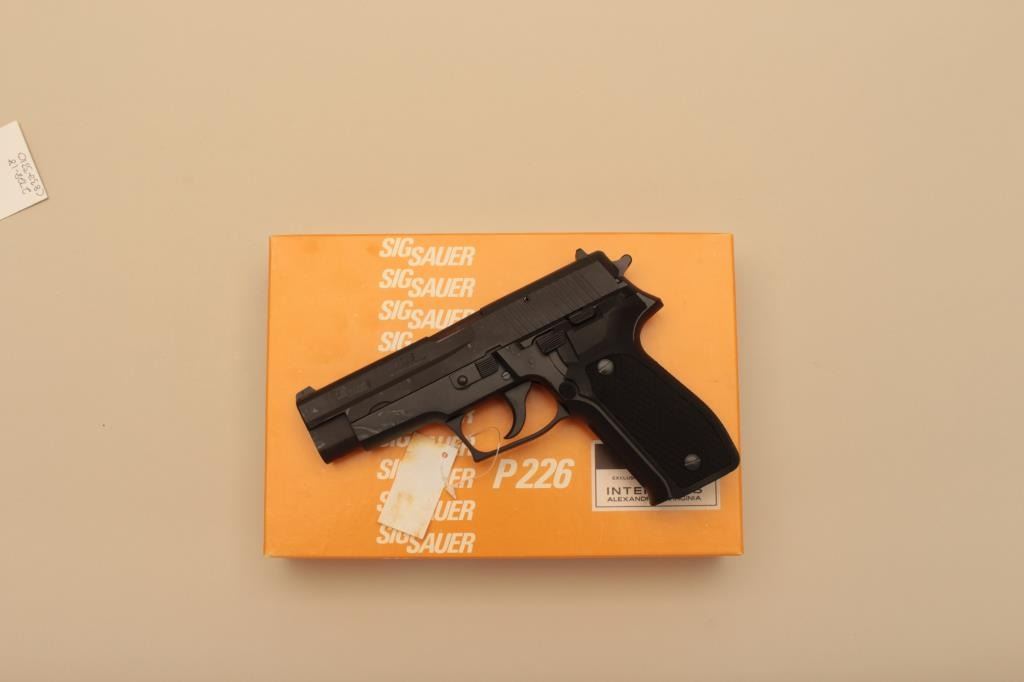 Sig Sauer P226, #U119548, 9mm, 4.25" barrel, nitride finish, checkered plastic grips. Pistol is in as new condition, with no appreciable wear. German made. Includes original box, manual hi-cap mag (nottransferrable to CA or other prohibited states or areas). (Modern/PPT) Est. $350-700