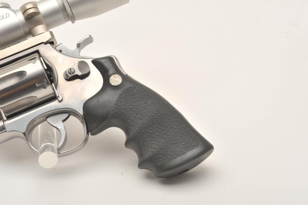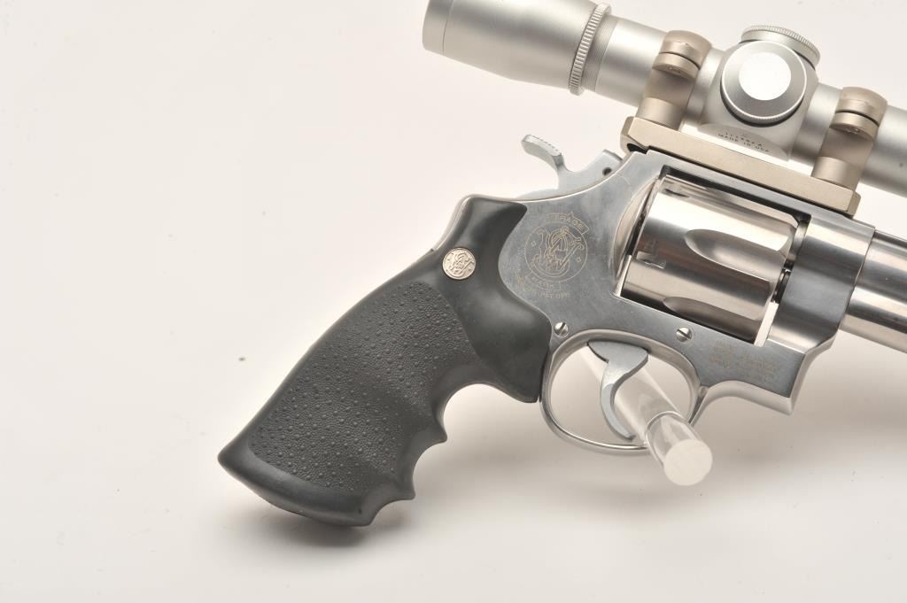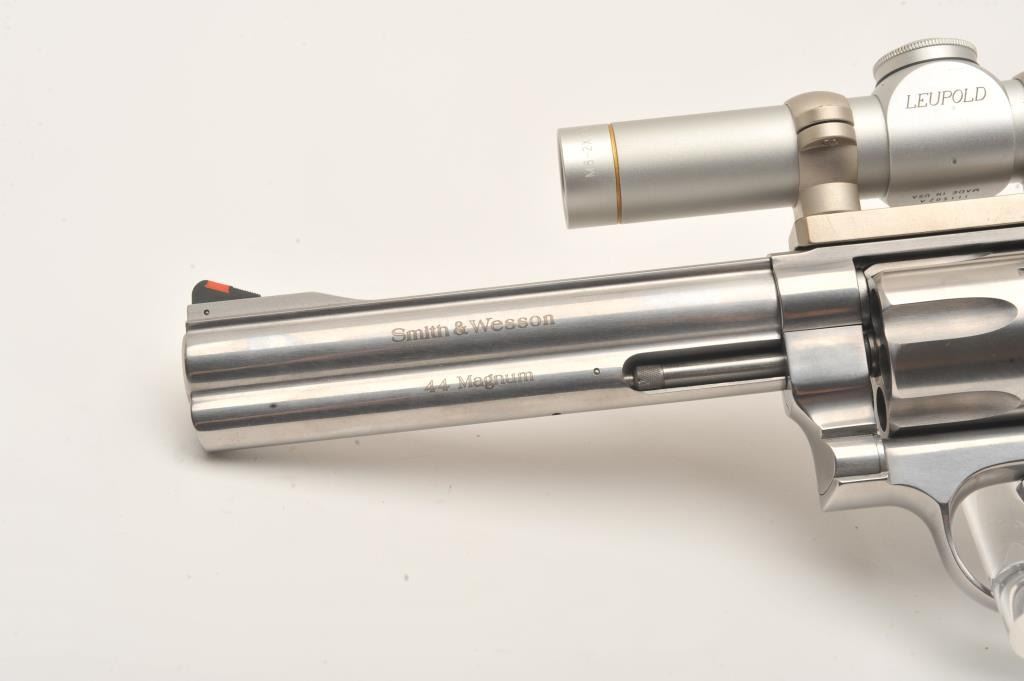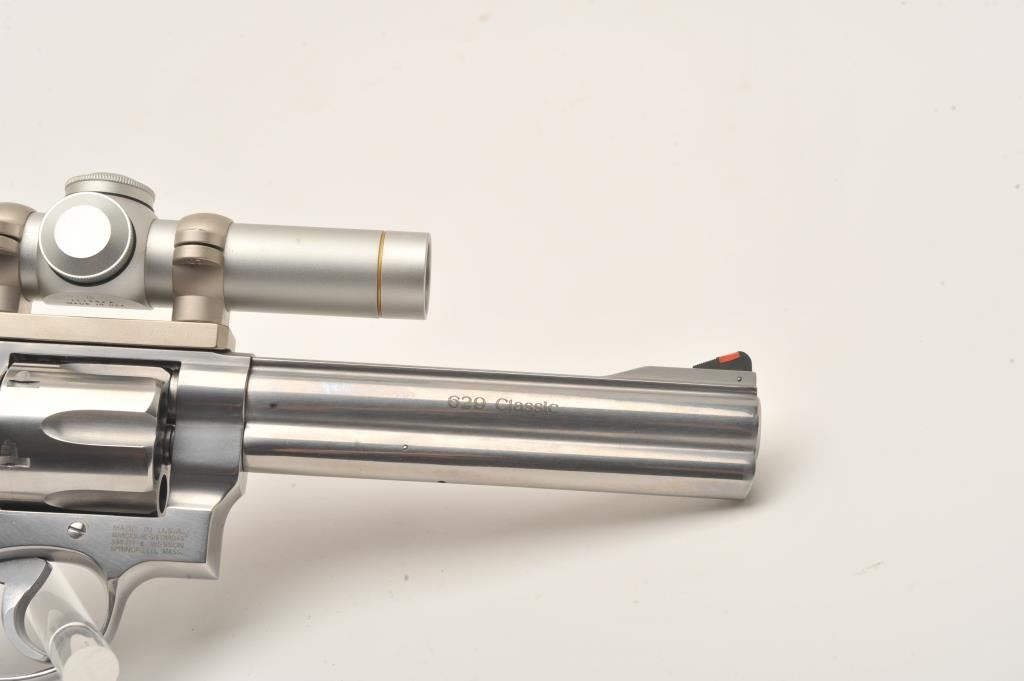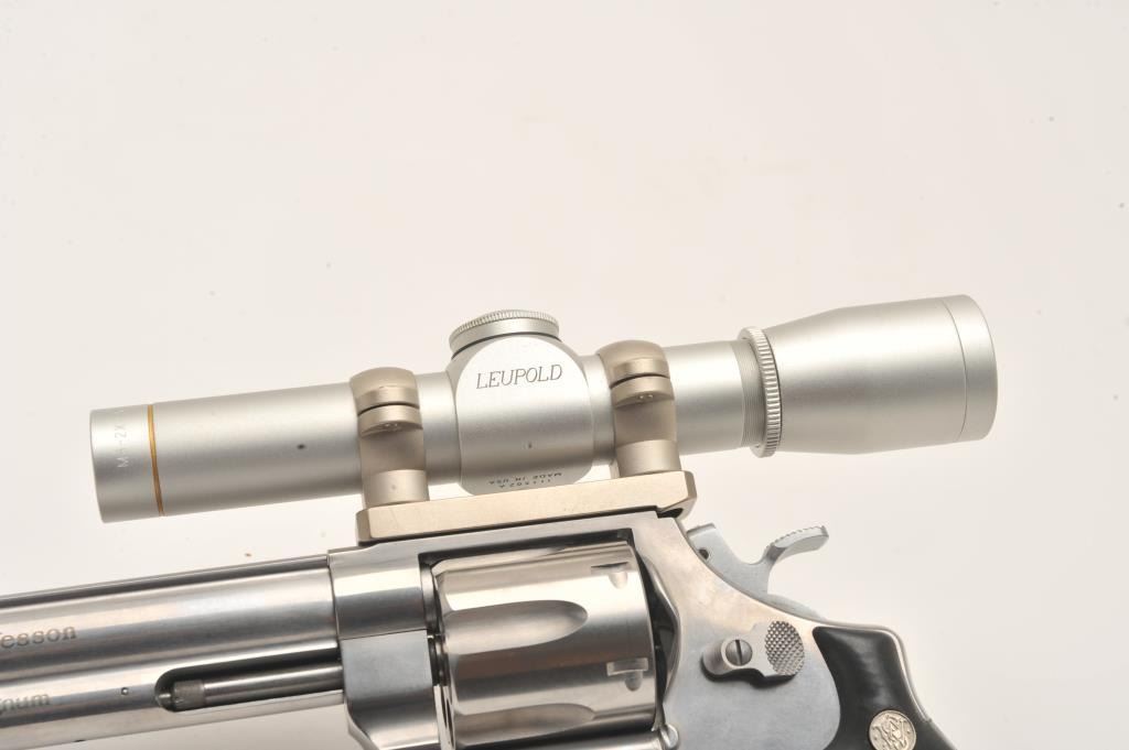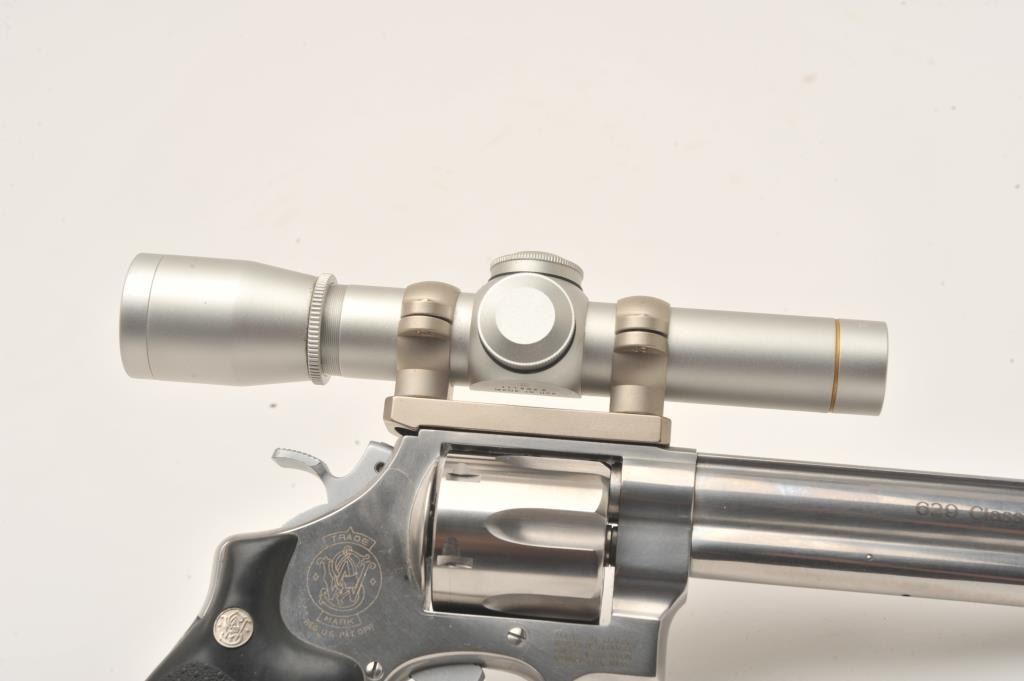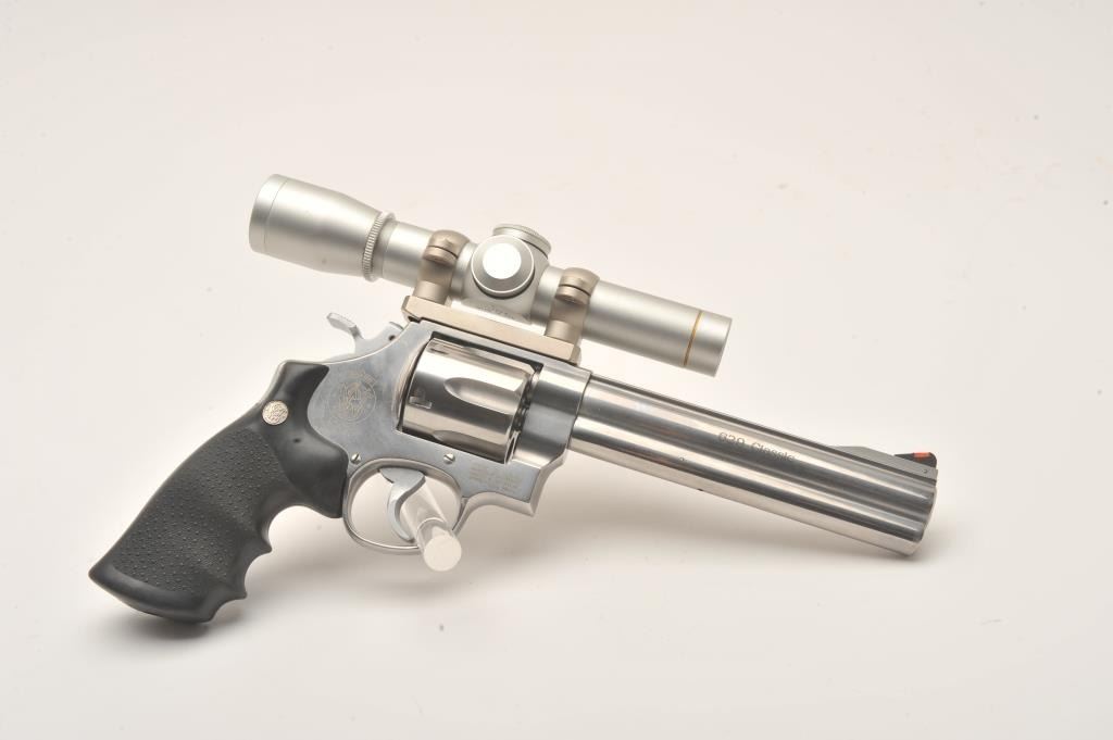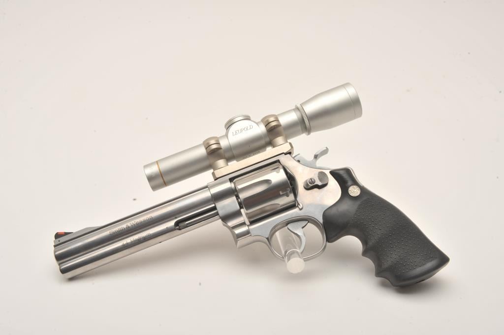 Smith & Wesson 629-3 Classic, #BPA5895, .44 Mag, 6" barrel, stainless, Hogue logo grips. Revolver is in very good to fine condition overall, showing very good bore, excellent action, good grips, rear sight removed tomount Leupold M-8 scope with good optics. (Modern/PPT) Est. $600-1200