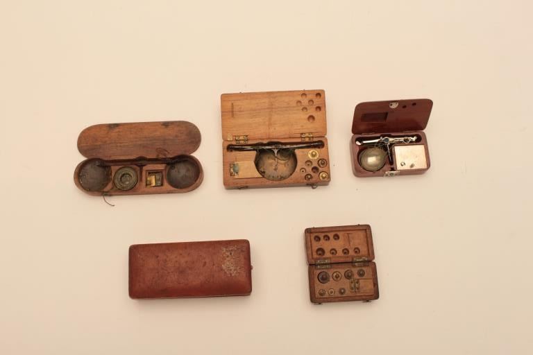 Lot of 4 gold scales with extra weights. 19th to early 20th century. Est.: $200-$400