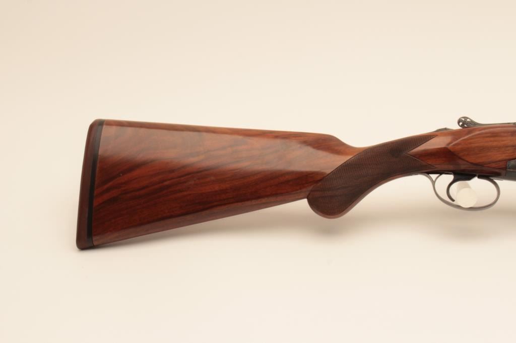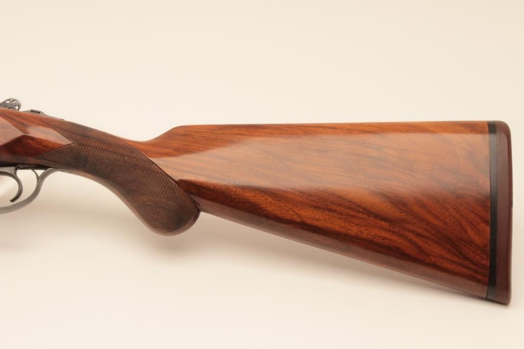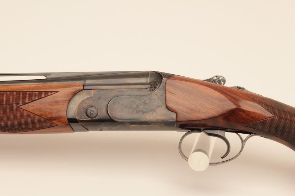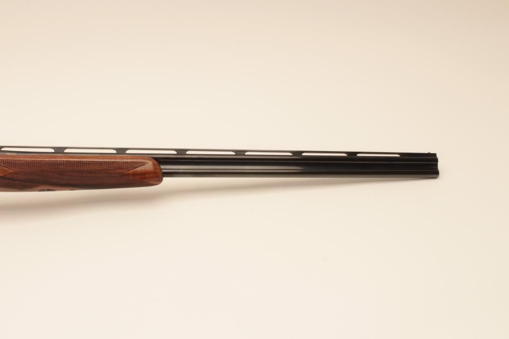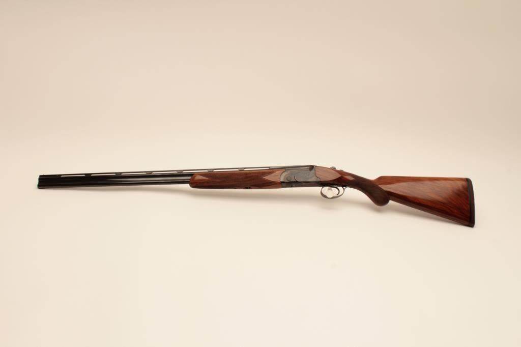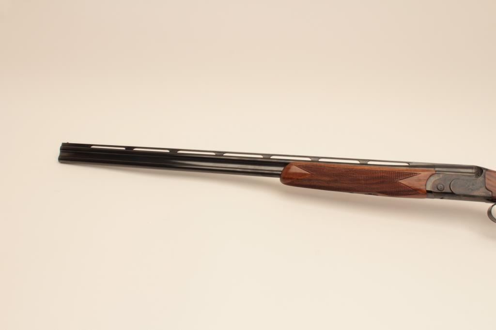Rizzini “Upland El” 3 barrel set in 20GA, 28GA, and 410GA, S/N 21957 with single trigger, auto ejectors, and rounded pistol grip style stock. The barrels measure 27 ½” with vent rib. The stock measures 14 ¾” tothe end of thin pad. The condition is fine to excellent with 97%-99% original blue and case hardening. The stocks are about fine with minute marks and very minor scratches from slight use. Locks tight with brightblue. Screw in chokes (10 with tool included). Shows Italian fine quality. (Modern) Est.: $6000-$12,000