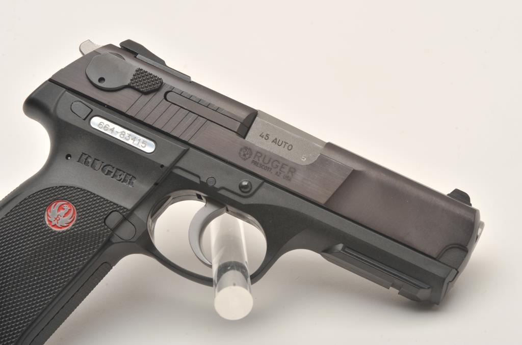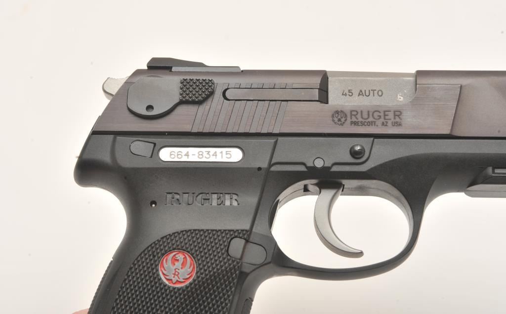 Ruger Model P345 semi-automatic pistol, .45 auto caliber, 4.25” barrel, blued finish, black integrated frame/grips, in factory hard case with one extra magazine and instructions manual; like new condition. (Modern/PPT). Est.: $300-$600.