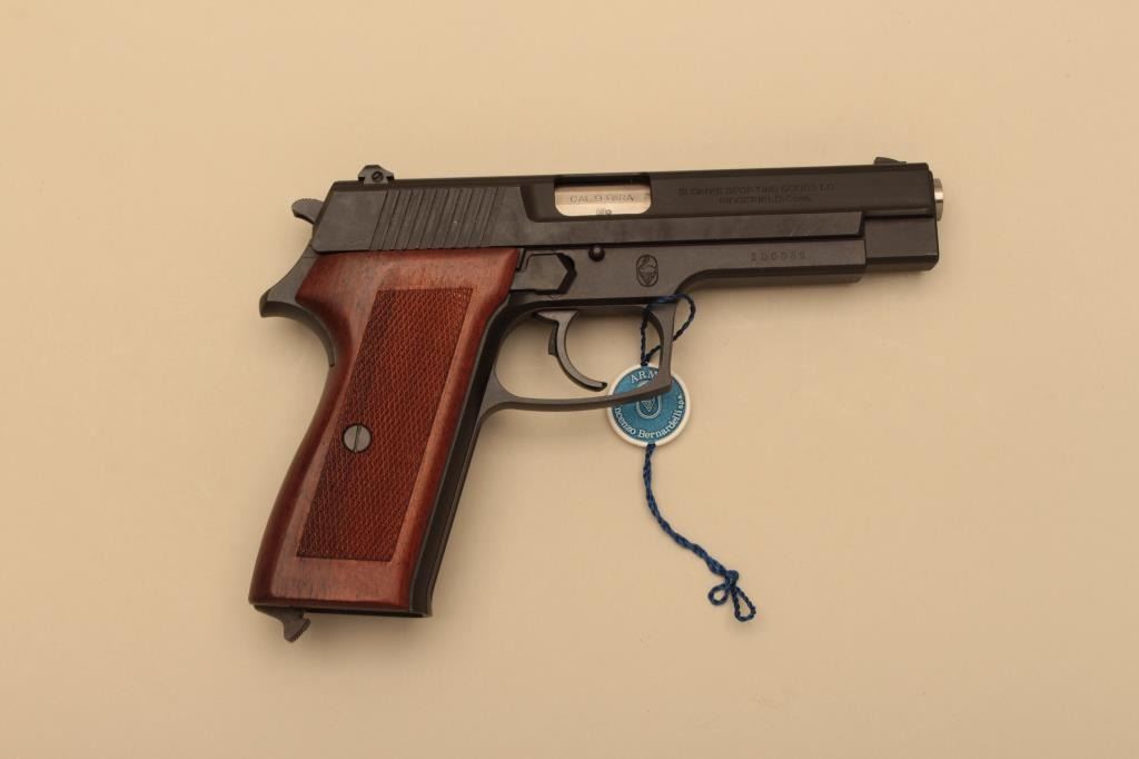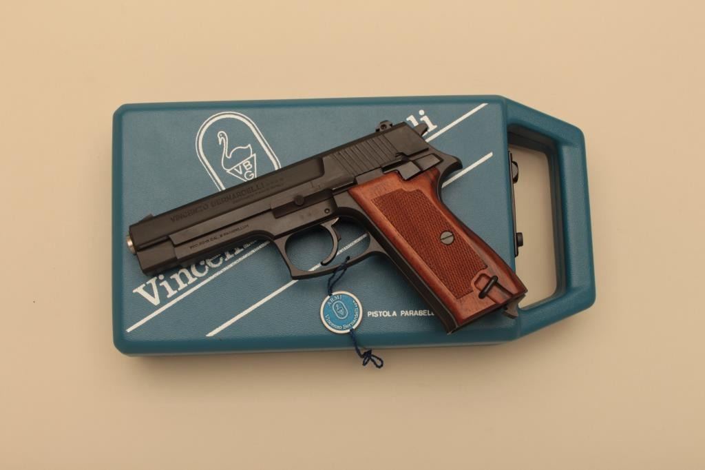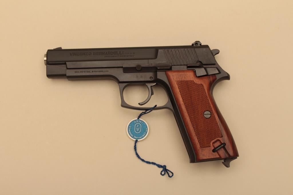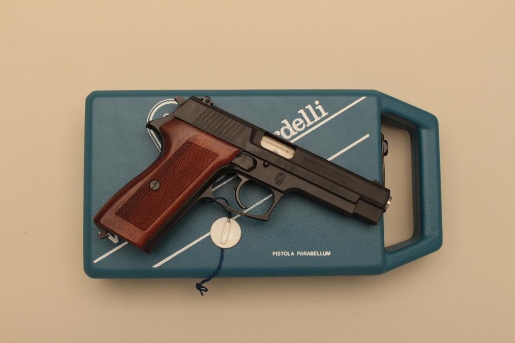 Scarce Bernardelli Model P018, #300085, 9mm, 4 3/4" barrel, matte black finish, adjustable sights, checkered wood grips. Pistol is in fine condition, retaining 96-98% original finish, excellent grips, fine bore, excellent action. Includes original hard case, instructions and 2 hi-cap mags (not transferrable to CA or other prohibited states or areas). (Modern/PPT) Est. $300-600