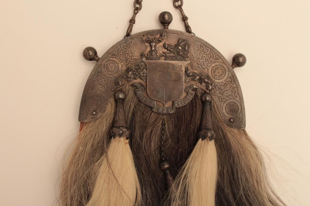 Lot 1032 18KO-10 FINE SPORAN SILVER MOUNTED AND ENGRAVED