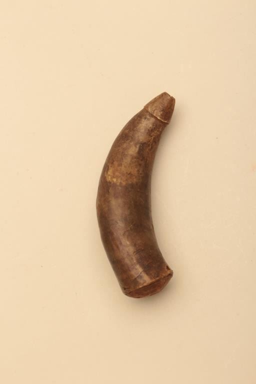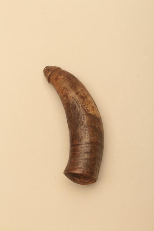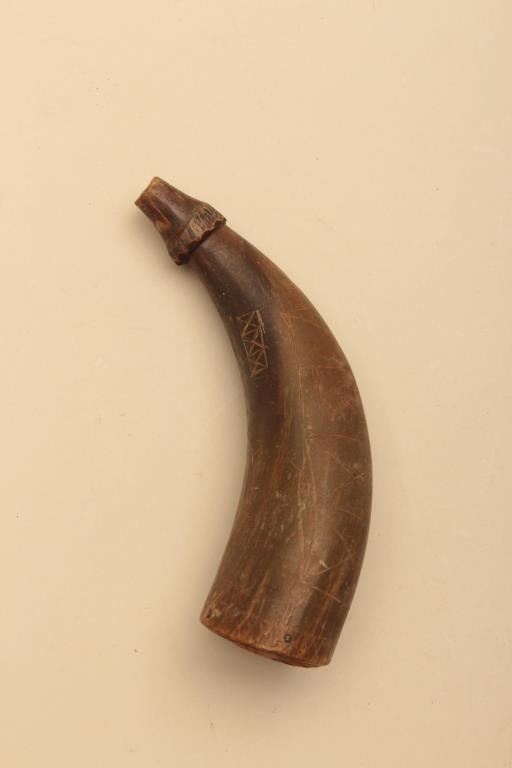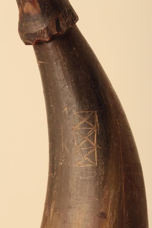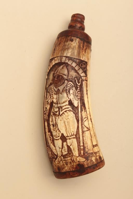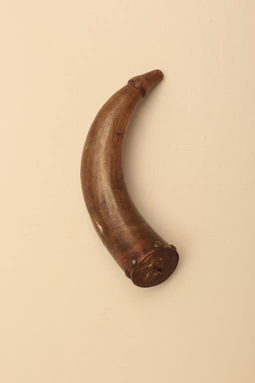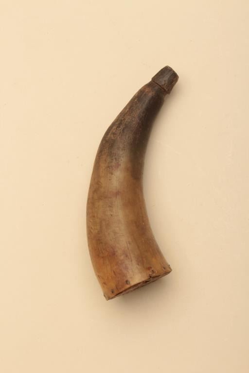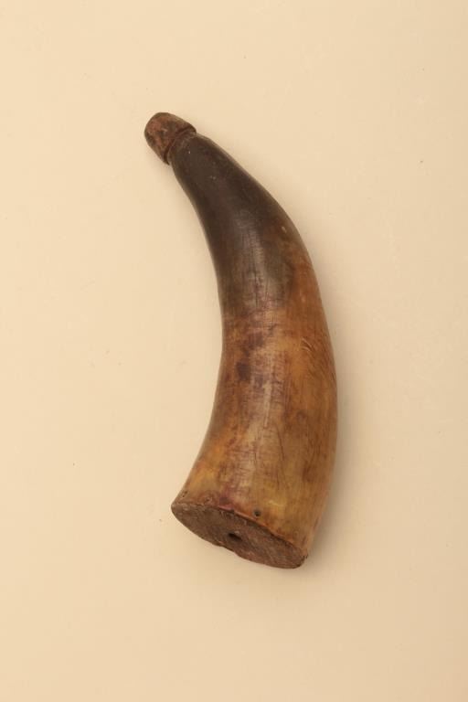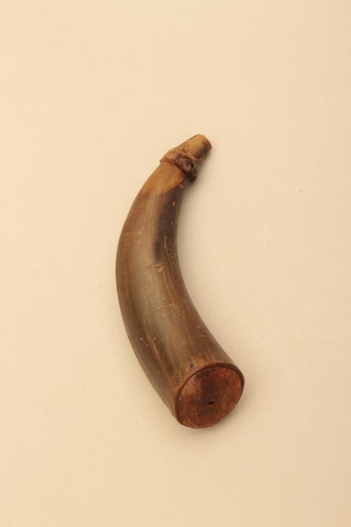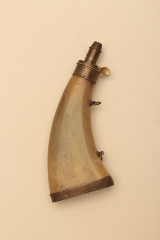 Lot of various size and type of powder horns. 1 small horn has an interesting poem. All antique. Est.: $250-$500