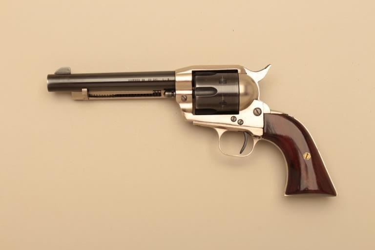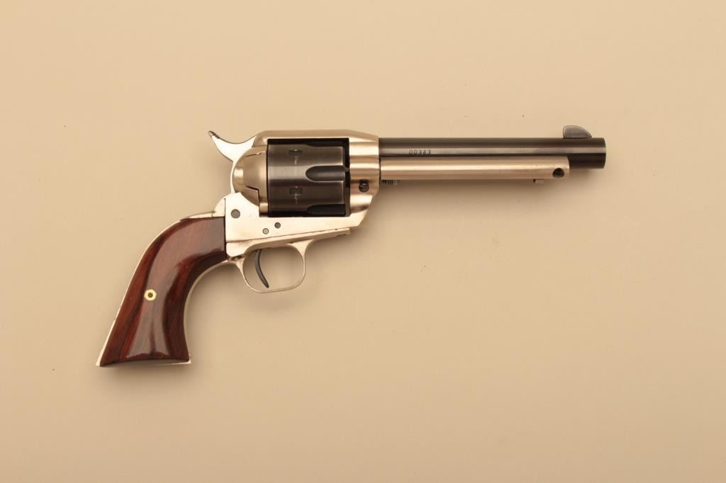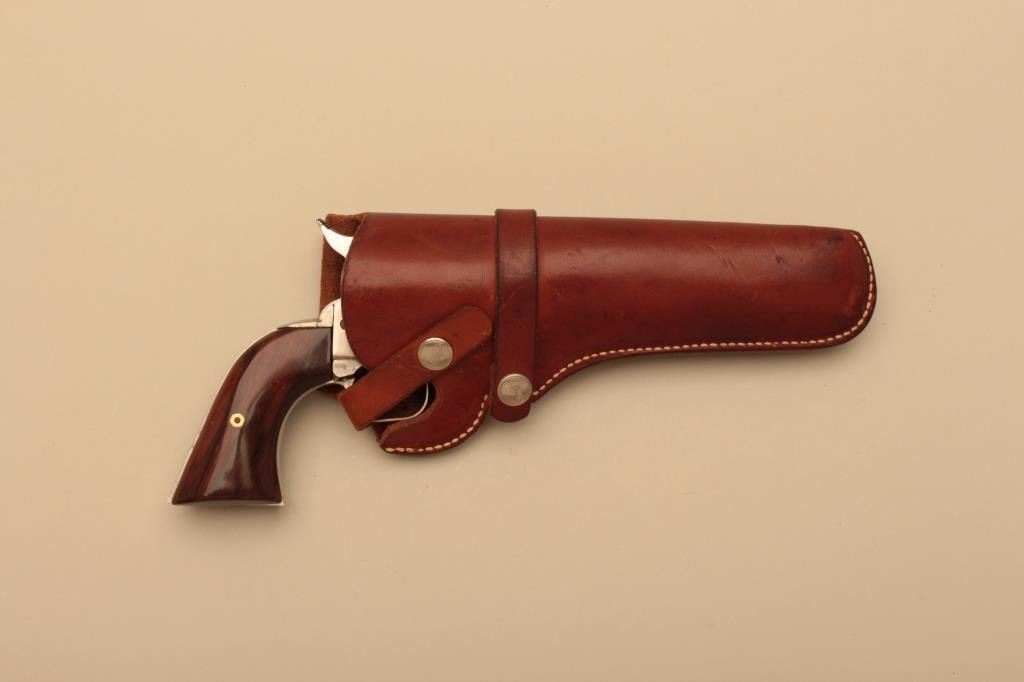 Liberty Firearms Model 14 single action revolver, #00343, .22 LR, 5 1/2" barrel, 2 tone finish, smooth wood grips. Revolver is in near fine condition, showing light wear. Action is very good with great timing.Includes HyHunter holster. (C&R/PPT) Est. $100-200